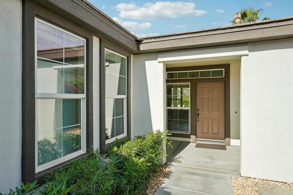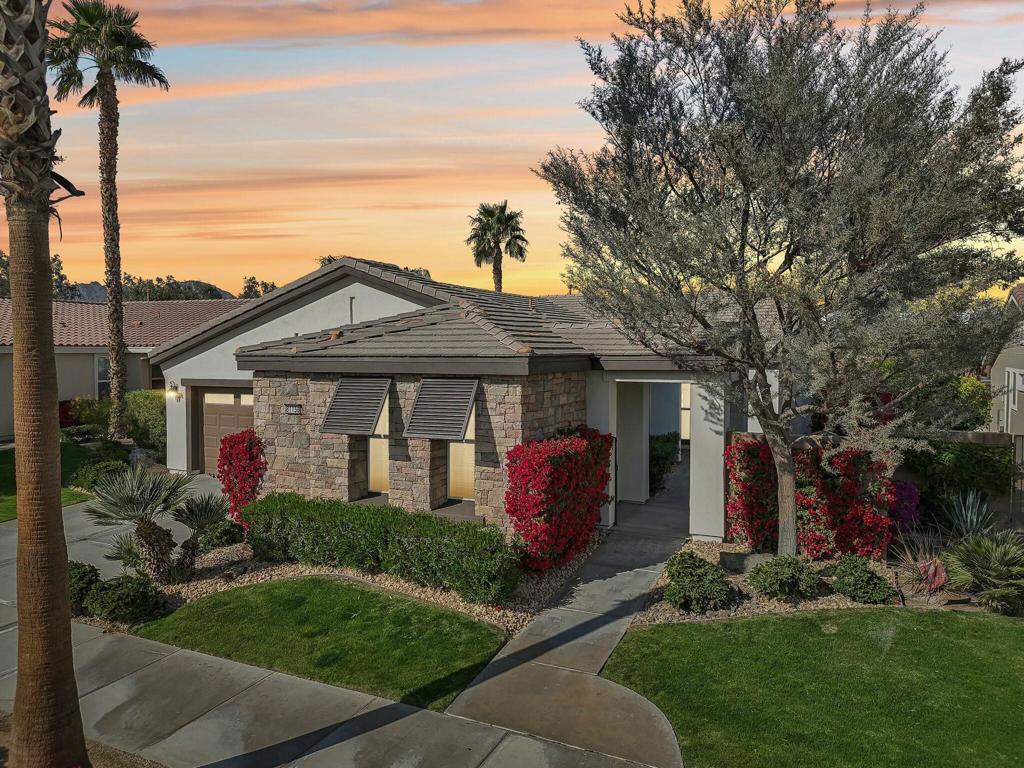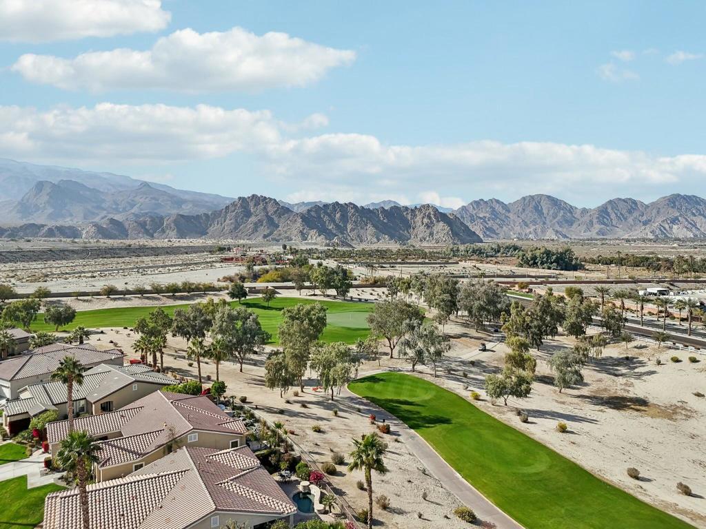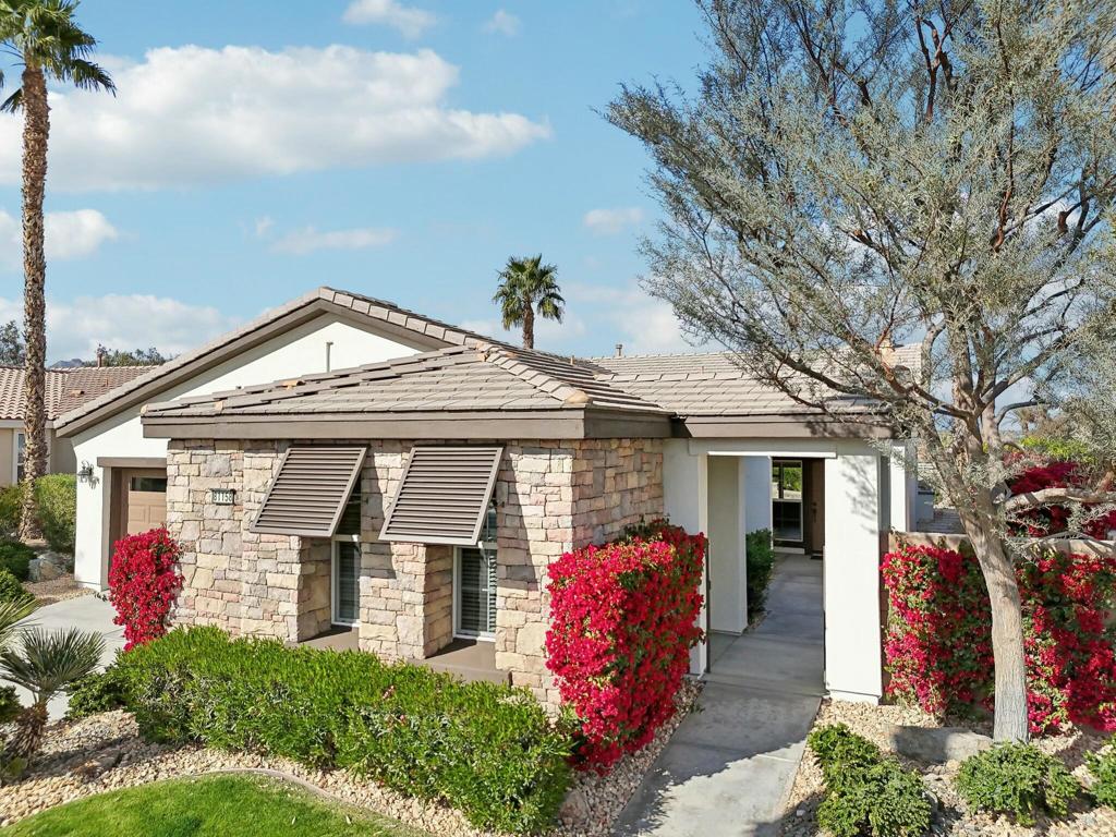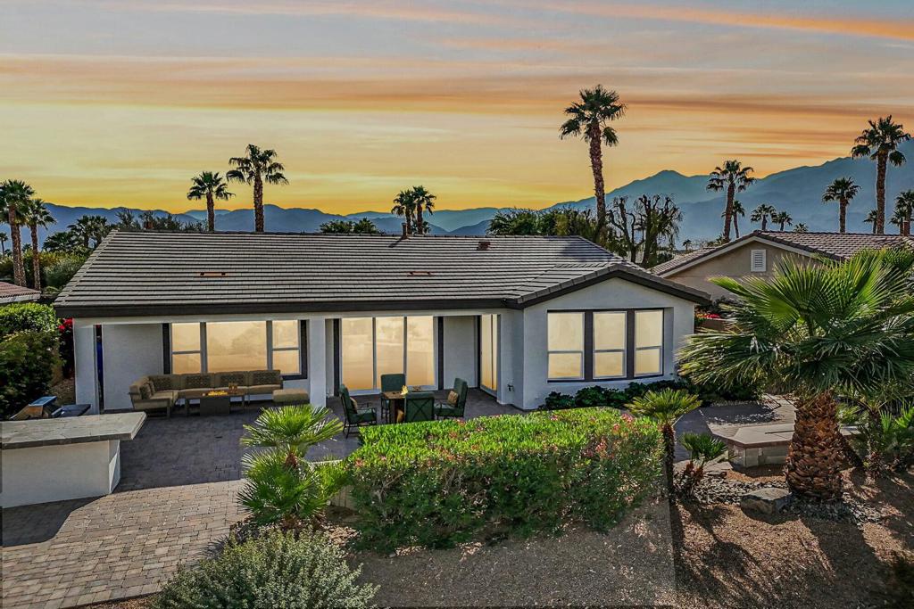 Perched on the 9th green at The Golf Club at La Quinta, this exquisite Oasis plan home with a striking Tuscan facade offers unparalleled panoramic views of the mountains, golf course, and spa. Set on an elevated 7,841 sq. ft. lot, this 1,835 sq. ft. gem boasts 3BD/3BA, including a private casita with a sink and beverage center. Step into the grand foyer and be captivated by the great room’s cozy tile-encased fireplace, diagonal-set flooring, and elegant dining area with a built-in hutch cavity. The chef’s kitchen is a showstopper, featuring slab granite counters, brand-new stainless appliances, double ovens, a gas cooktop, a prep island, a breakfast bar, and a walk-in pantry. Thoughtful upgrades abound, including fresh interior/exterior paint, modern LED lighting, and sleek epoxy flooring in the two-car garage. The primary retreat is a sanctuary, offering a bay window, sliding door to the spa, and an en suite with dual vanities, a spacious shower enclosure with a bench, and a generous walk-in closet. Designed for entertaining, the backyard dazzles with an expansive paver deck, a covered patio, a built-in BBQ station with bar seating, and a Pebble Tec spa featuring tri-water descents and a fire feature for cozy winter nights. Best of all, the Santa Rosa Clubhouse, with its top-tier amenities, is just a quick golf cart ride away!