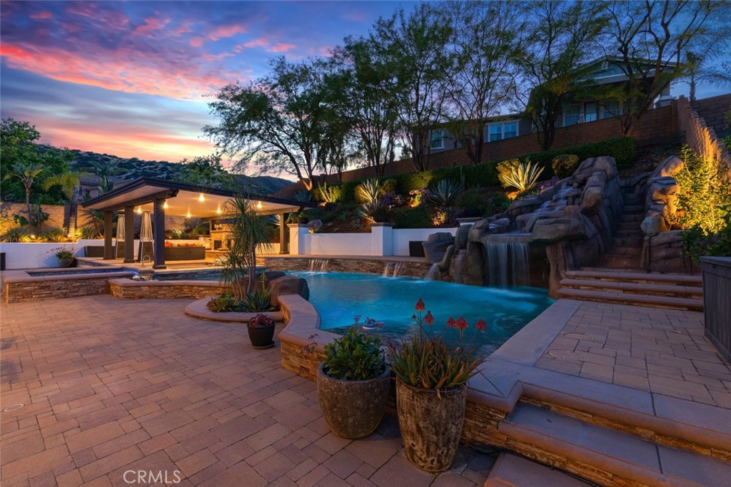 Situated within the prestigious gated community of The Retreat, this magnificent corner lot residence offers an exceptional blend of luxury, comfort, and resort-style living. From the moment you arrive, the inviting entry courtyard sets the tone for what awaits inside. The thoughtfully designed interior showcases a gourmet, chef-inspired kitchen that is sure to impress, offering ample space for both everyday living and entertaining. The expansive primary suite is truly fit for royalty, featuring a cozy fireplace that creates the perfect private retreat with warmth and elegance. Step outside to an entertainer’s dream backyard, where a sparkling crystal-clear pool takes center stage, complete with a relaxing grotto and an exciting water slide. The detached patio cover provides the perfect setting for outdoor gatherings, enhanced by a cozy fireplace and a built-in barbecue area ideal for hosting family and friends year-round. This is a rare opportunity to own a stunning home in one of the area’s most sought-after gated communities, don’t miss it!