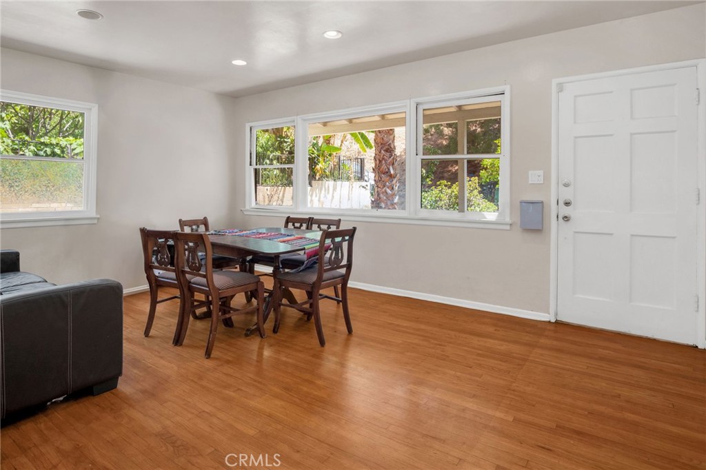 Tucked away on a quiet cul-de-sac in the highly desirable Garvanza/Arroyo Estates, this charming 1950’s Traditional 6 Bedroom home offers a flexible floor plan.Step inside to a bright front room with hardwood flooring and abundant windows that can serve as a living room or formal dining space. The expanded first bathroom features a full-size walk-in shower and plenty of closet/storage space. The good size kitchen with a bar that seats two, perfectly separating the kitchen from the dining area for a defined layout. The front bedroom includes a charming garden window overlooking the yard and a private exterior entrance, while a second bedroom offers ample storage and direct outdoor access. A few steps down, you’ll find the large living room with sliding glass doors leading outside and a stunning mid-century modern freestanding fireplace. Just off the living room, an additional space that can be used as a home office, gym, or den, complete with sliding glass doors for privacy and its own outdoor entrance. Two additional bedrooms downstairs each feature private exterior entrances, providing excellent options for guests or extended family. The full-size laundry closet and a second large full bath with a tub/shower combo and outdoor access complete the lower level. Upstairs, the primary suite boasts a spacious bathroom with dual sinks, a jacuzzi tub, and a separate walk-in shower. The walk-in closet includes dual entrances (bedroom and bathroom) and custom built-in shelving. The primary bedroom offers two balconies one overlooking the backyard and another connecting to the fifth bedroom. Additional highlights include individual thermostat controls for each bedroom, recessed lighting throughout, a two-car garage with direct home access, ample parking on the property, and fruit trees with a lemon tree in the front yard and a mango tree in the backyard. This property’s unique layout, charm, and location make it a rare find in one of the area’s most sought-after neighborhoods. All this just minutes from Pasadena, Highland Park, Eagle Rock, DTLA, and easy access to the 110 Freeway.