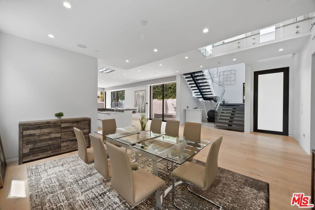 This 4-bedroom, 4.5-bath modern architectural home is situated on a quiet street near the heart of Melrose and blends high-end design with seamless indoor-outdoor living. The residence offers an open-concept layout with Fleetwood pocket doors that lead to a private backyard retreat featuring a pool, spa, and cascading waterfall. A sleek chef’s kitchen anchors the main level, complete with marble countertops, a large center island, and premium stainless steel appliances. The living area is centered around a striking marble fireplace and flows effortlessly for entertaining or everyday comfort. Upstairs, the primary suite boasts its own fireplace, a spa-inspired bath with a soaking tub and oversized rain shower, and a custom walk-in closet. Three additional ensuite bedrooms, including one conveniently located downstairs, provide comfort and privacy for family or guests. Additional highlights include floating stairs, wide-plank hardwood floors, and multiple balconies. The expansive rooftop deck offers breathtaking 360-degree city views, creating the perfect setting for sunset gatherings and entertaining under the stars.