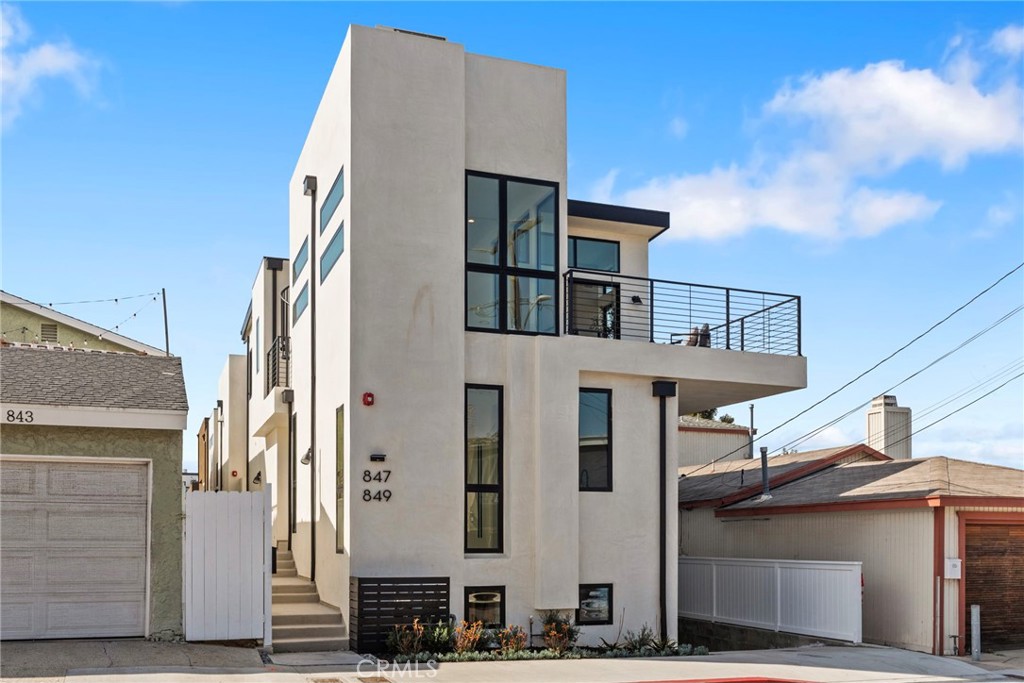 Introducing a new construction detached townhome on 847 Bard Street in Hermosa Beach. This 3-bedroom, 3.5-bathroom home spans 2,097 SF (per builder plans) and seamlessly blends modern design with timeless style, featuring a durable exterior that reflects modern architectural finesse. Inside, the open-concept floor plan effortlessly connects living spaces, making it ideal for both entertaining and daily living. The interiors, thoughtfully designed by Miller James Design, showcase a refined mix of modern and transitional elements, including limestone brick accents, natural finishes, and elegant brass fixtures. The gourmet kitchen is equipped with high-end Thermador appliances, adding to the home’s modern luxury. Subtle coastal influences enhance the sense of tranquility throughout. The luxurious master suite includes a spa-like bathroom, while expansive La Cantina doors open to a patio for seamless indoor-outdoor living. A private rooftop deck provides additional space for relaxation and entertainment, perfect for enjoying the coastal breeze. The home is also equipped with solar panels, air conditioning, central heat, and a two-car garage for modern convenience. Located just seven blocks from the beach and with great proximity to the Greenbelt walking path, this townhome offers the perfect blend of modern luxury and coastal living.