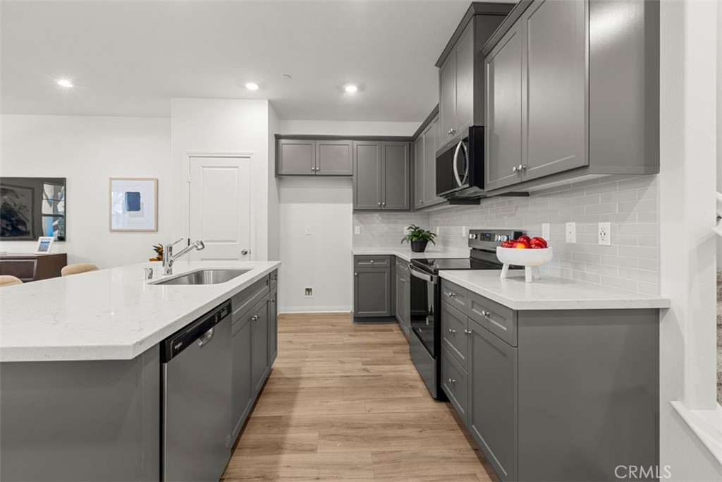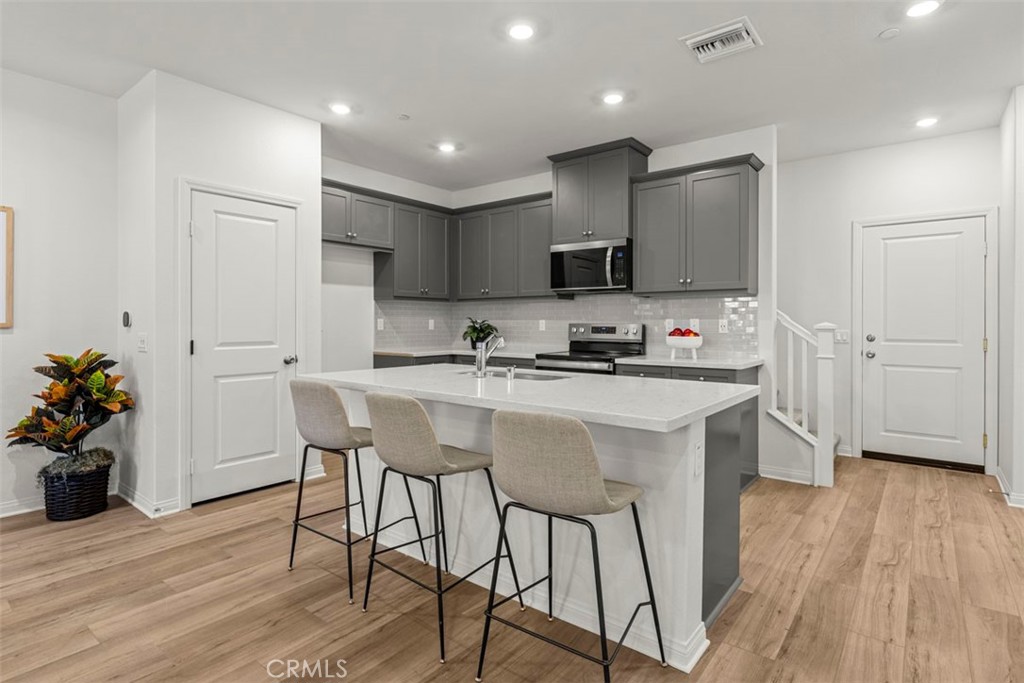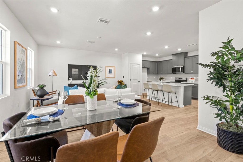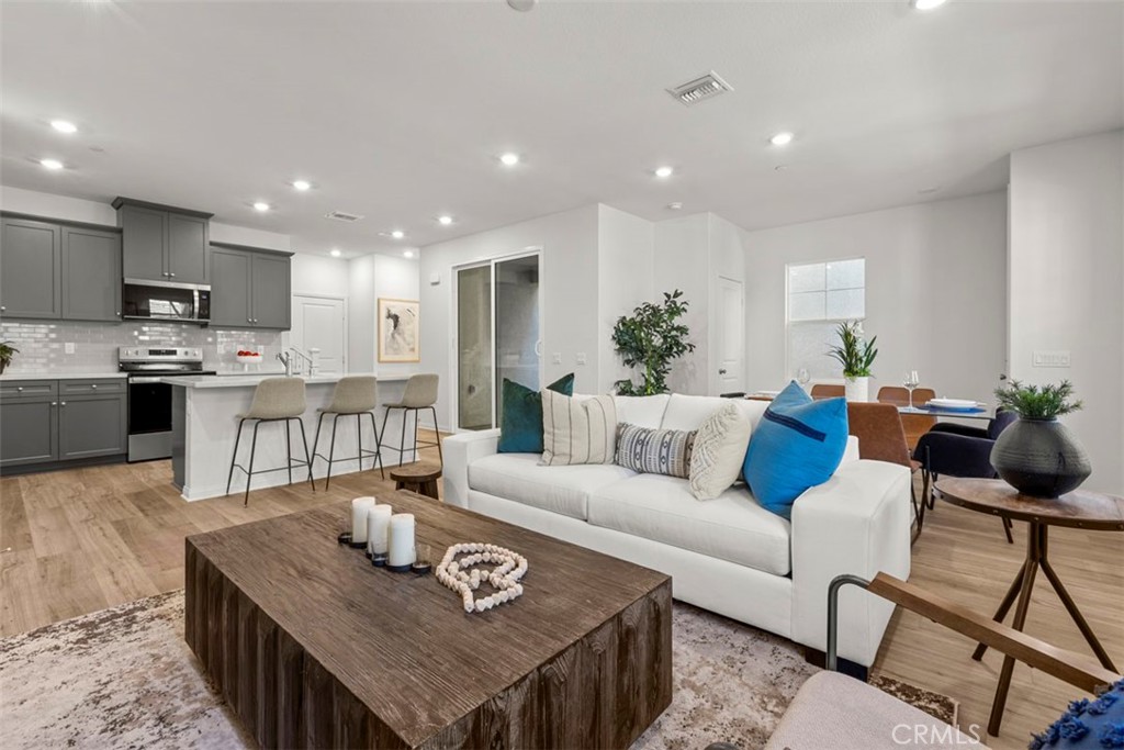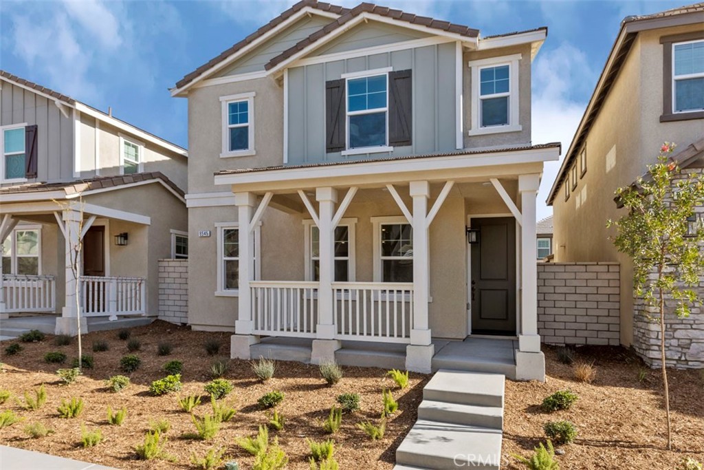 Monet is a modern new community directly across from the brand new Town Shopping Center. This floor plan offers an open 1820 sq/ft floor plan with 9-ft ceiling, 3 bedrooms, spacious loft, and 2.5 bath. Home features a desirable kitchen with modern island, Storm colored Shaker Cabinets, Quartz Countertops & backsplash, and whirlpool stainless steel appliances. Resort style Cover Patio is also included. The upstairs leads to a spacious primary bedroom with a large walk-in-closet and luxurious adjoining bath with double sink and large walk-in shower. A upstairs laundry room and Linen closet are added for more convenience. Additional upgrade features: White Open Stair Rails, recessed lighting thru out, garage with smart genie, Covered Patio, Luxury Vinyl Plank flooring on (main floor, primary bath, bath2 and laundry room), and textured carpet upstairs. All Homes are EV pre-wired in the garage. Future community amenities include community pool/spa/meeting center, Pickleball court, BBQ/Picnic area and park. Also Monet is part of great schools: highly coveted Cal Aero & Legacy (K-8) and Chino Hills High School. Photo is a rendering of the model, you can either purchase or lease the solar