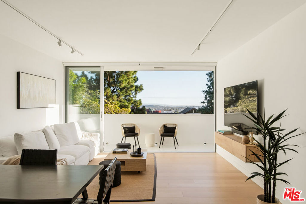 Located in the premier Shoreham Towers full-service high-rise, this luxury fully renovated 1-bed, 1-bath, 832 sq. ft. corner unit sits above the Sunset Strip. Enjoy quiet, sweeping city, beyond, and treetop views blending nature with the iconic backdrop. A double-door entry opens to bright open-concept living with wide-plank hardwood floors, and all floor-to-ceiling windows have automatic drop-down treatments for privacy. Telescoping floor-to-ceiling doors lead to a large living room terrace connecting to the primary suite. The suite offers a private balcony, large walk-in closet, and flush built-in electric fireplace. The spa-like bath includes floor-to-ceiling tile, a glass-enclosed shower with bench, floating vanity, and designer fixtures. The kitchen features a waterfall countertop with bar seating, stainless steel appliances, gas stove, and a window for natural light. South-facing, it offers all-day sunlight without direct exposure. In-unit laundry and HOA dues cover all utilities, basic cable, valet, pool, spa, gym, and dog run. Plus, you’re steps from the Sunset Strip’s top restaurants, shopping, entertainment, and vibrant nightlife. Luxury living in the heart of it.