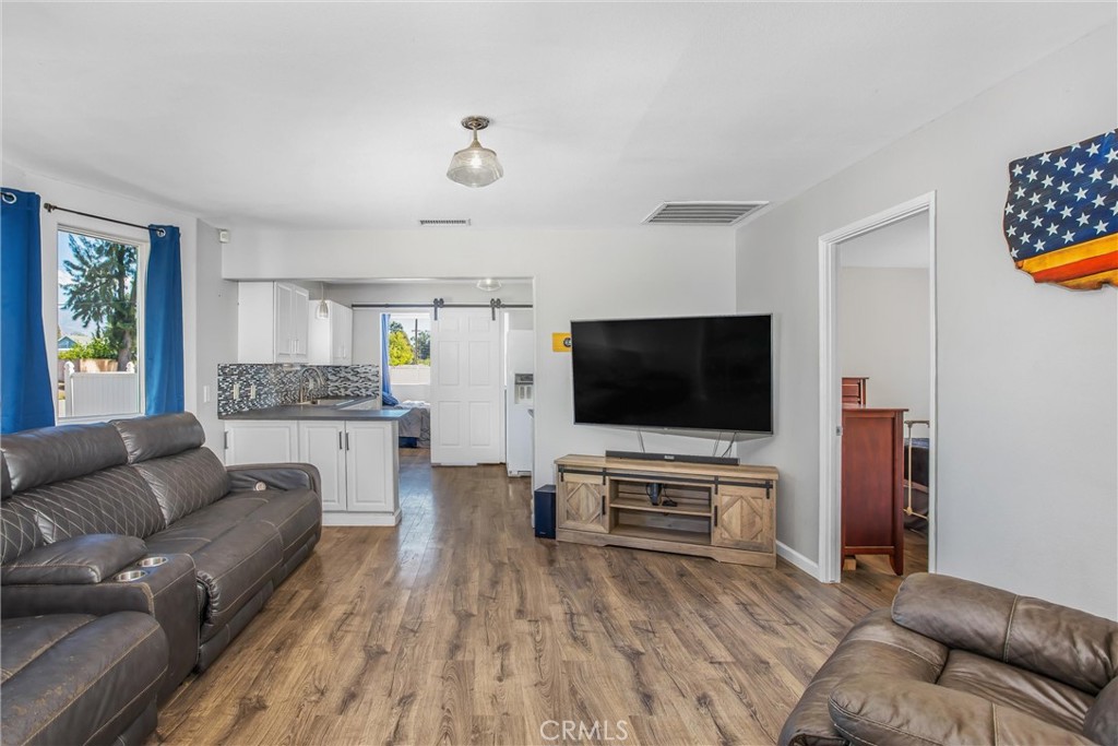 Charming Home on a Large Corner Lot with ADU Potential! Welcome to this beautifully updated home offering the perfect blend of comfort and convenience. Situated on a spacious corner lot, this property provides excellent ADU potential for multigenerational living or additional income opportunities. Step inside to find a light-filled living space with modern finishes, wood-laminate flooring throughout, and an open layout that flows seamlessly from the living and dining areas into the updated kitchen. The kitchen boasts sleek countertops, stainless steel appliances, and a stylish backsplash. The home also features a beautifully upgraded bathroom with dual vanities and ample storage. The detached 2-car garage (approximately 29’ x 17’6”) provides plenty of room for parking, storage, or even a workshop setup. Additional highlights include RV parking with a gated side-street entrance and an easement for alley access — making this property ideal for those who need extra space for vehicles, toys, or equipment. Outdoors, the expansive backyard with a covered patio is perfect for entertaining, relaxing, or customizing to fit your needs. Enjoy stunning mountain views right from your property, offering a peaceful backdrop to your daily life. Plus, you’ll love the convenient location — close to freeways, shopping, schools, parks, and more. Don’t miss the chance to own this versatile property with so much to offer — schedule your private tour today!