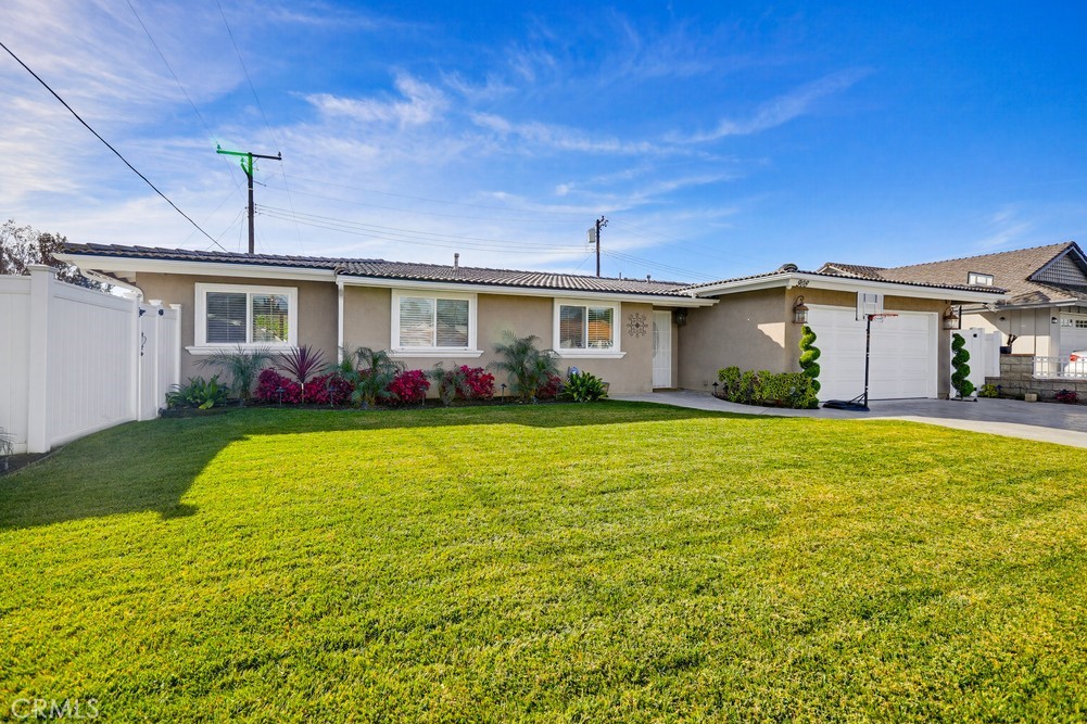 Brea living at its finest. This stunning 4-bedroom, 2-bath residence has been thoughtfully remodeled with exceptional attention to detail throughout. A spacious central great room serves as the heart of the home, seamlessly integrating the kitchen, living, and dining areas while opening directly to the backyard—ideal for indoor-outdoor living and entertaining. Vaulted ceilings enhance the open, airy ambiance of the main living space. The home features waterproof laminate flooring throughout, granite countertops in both the kitchen and bathrooms, a quartz kitchen island, and a striking granite fireplace. The chef’s kitchen is equipped with a six-burner range, generous prep space, and a custom bar—perfect for hosting and everyday enjoyment. Additional upgrades include an electric gate, shutters, water softener, brand-new exterior gutters, and vinyl fencing. The entertainer’s backyard showcases a heated saltwater pool remodeled two years ago, optional pool fencing, outdoor color-changing accent lighting, and a covered patio ideal for year-round use. A separate dog run with drainage adds both convenience and functionality. The garage is equipped with its own heating and air conditioning, making it ideal for a home office, gym, or flexible-use space. Ideally located within the award-winning Brea-Olinda Unified School District, this exceptional property truly offers the best of Brea living.