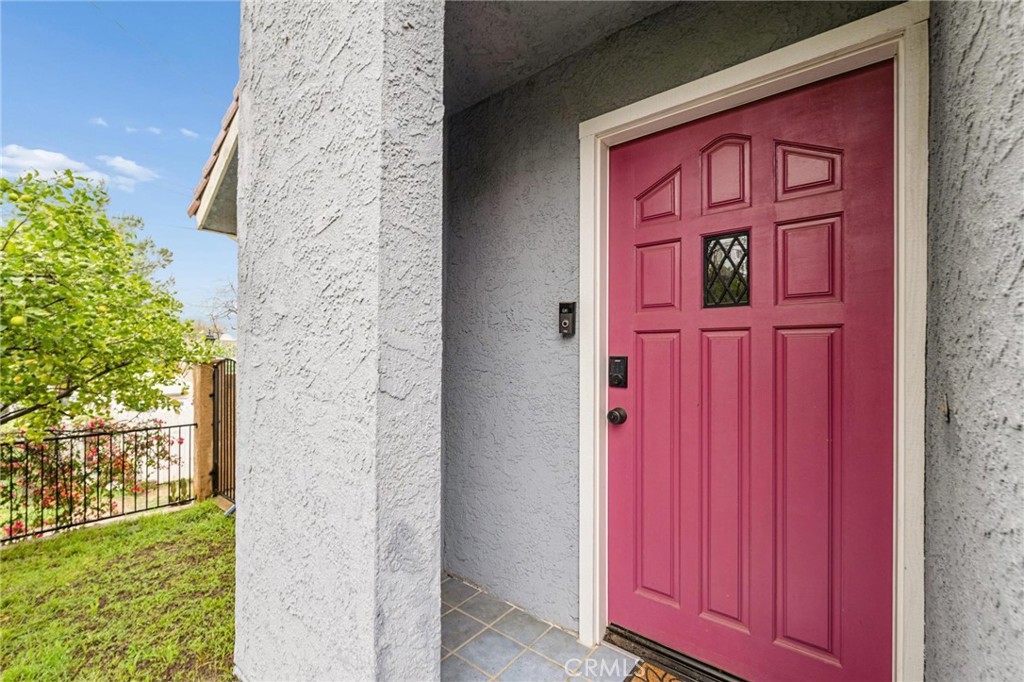 Welcome to this lovely property located in the charming location of Lake Manor in Chatsworth. Close to the 118 freeway this home is tucked away in this serene area. As you walk into the entry you are greeted by a spacious living room with vaulted ceilings and a large brick fireplace that sets the ambiance of the house. There are dual sliding glass doors that create a light atmosphere and lead to the very private backyard. Adjacent to this area is the eating area and the inviting kitchen with modern appliances and a pantry. A doorway from the kitchen leads to the oversized attached garage with laundry hook-ups. All of the bedrooms are upstairs and the primary suite features a walk-in closet, wood laminate flooring, a balcony and a bathroom with dual sinks. The two additional bedrooms share a remodeled hallway bathroom and each bedroom has modern sliding closet doors. Additional features in the home is the Hvac system, dual paned windows, wood laminate flooring as well as tile flooring in the entrance and bathrooms.