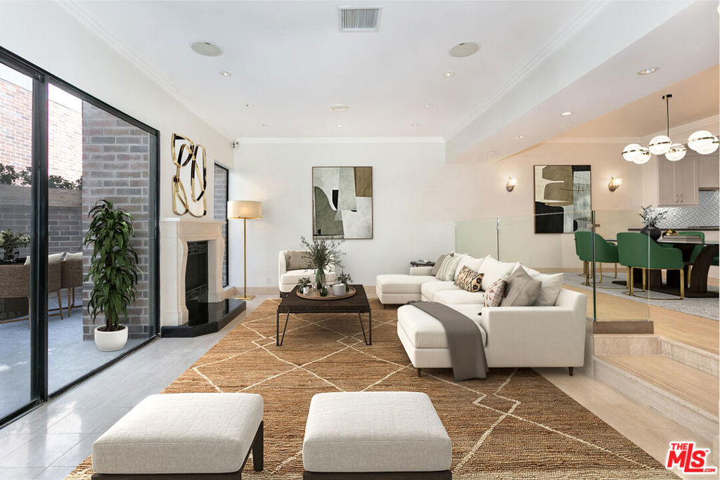 Stylishly remodeled multi-level townhome in a prime Beverly Hills location, just moments from Rodeo Drive, shops, and restaurants. The main living area features high ceilings, a fireplace, and an open flow to a large private patio ideal for entertaining or relaxed outdoor dining. The updated kitchen is equipped with premium stainless steel appliances, custom cabinetry, and generous prep space. Upstairs, the spacious primary suite offers a spa-inspired bath with dual sinks, soaking tub, and walk-in shower, along with ample closet space. A second ensuite bedroom is also located on the upper level, while the lower level provides a third bedroom or flexible space for a home office, gym, or media room. Additional features include direct entry from a private two-car garage, abundant storage, and a quiet setting within the building.