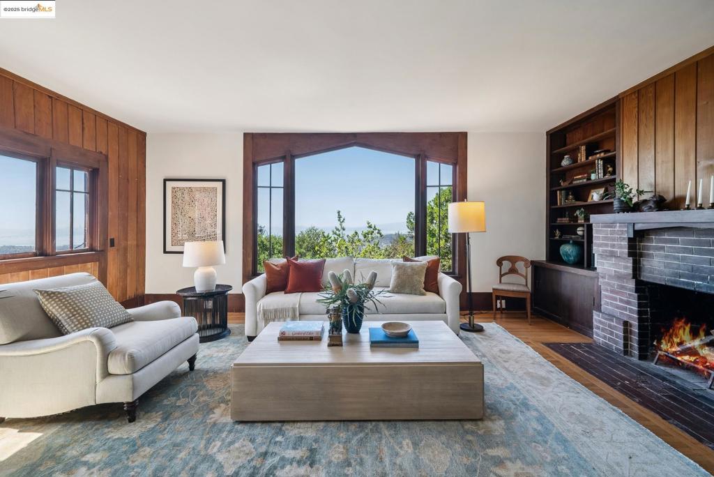 This Arts & Crafts era residence nestled in the Berkeley Hills offers the perfect blend of period charm, spacious living & breathtaking panoramic views of SF, Bay & GG Bridges, & Mt. Tam. Built in 1915, this thoughtfully designed 3++ bed, 2+ bath home sits on a massive 20,375 SF lot. The separate garage & driveway creates opportunities for a lot split or ADU. The main level with gorgeous oak floors offers a dramatic living room with period wood trim, warm brick fireplace flanked by built-ins & large picture windows to the sweeping Bay views. The dining room boasts box beams, built-ins & a wall of windows to fill the room with natural light. Enjoy the expansive woodsy setting & Bay views while dining & entertaining on the wraparound balcony. The kitchen has ample cabinetry & opens seamlessly to nature-filled back decks. A lower level guest suite, complete with kitchenette & full bath makes it perfect as a casual family room, home office or in-law suite with both interior & separate exterior entry. Just minutes to No. Berkeley restaurants, shops, farmer’s markets & vibrant downtown. This exceptional property is ready for your inspiring vision & updating with endless opportunities to expand & take advantage of the private hills setting & views.