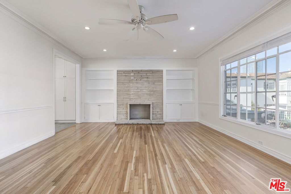 Renovated 2nd floor corner residence overlooking Roxbury Park, located in a classic boutique Beverly Hills apartment building. This exceptional unit strikes a thoughtful balance between modern upgrades and preserved 1930’s European character. The expansive living room is filled with natural light and features a decorative fireplace, built-in bookshelves, and a convenient TV-mount setup, all framed by an abundance of windows. The renovated kitchen is both stylish and functional, offering stainless steel appliances, quartz countertops, subway-tile backsplash, tiled flooring, generous cabinetry, and a large window with serene park and treetop views. A rear entrance provides easy access, and side-by-side in-unit laundry is conveniently located just off the kitchen. The bright and airy primary bedroom features corner windows with peaceful park and treetop outlooks. The spacious second bedroom is highlighted by a charming bay window. The oversized bathroom offers a separate soaking tub and large walk-in shower, a linen closet, elegant tilework, and additional park views. Throughout the unit, classic architectural details shine, including detailed crown moldings and beautiful hardwood floors, complemented by modern amenities such as forced-air AC and heat, recessed lighting with dimmers, and abundant closet space and storage, including a two large hall closets. The gorgeous building offers a sparkling pool, lush gardens, inviting outdoor spaces, and a striking stairwell that reflects its original charm. Ideally situated next to Roxbury Park and just moments from Beverly Hills High School, this central location places you in Beverly Hills while offering effortless access to Century City and the Westside. One covered carport parking space included. Approximately 1,100 square feet. A rare opportunity to lease a refined residence in Beverly Hills.