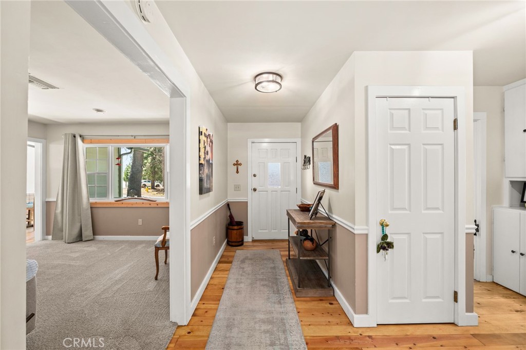 Located in the Smiley Park Country Club, southeast of Running Springs, this turnkey home is tucked away on a quiet cul-de-sac and set on 1.24 acres surrounded by trees and local wildlife. A charming brick walkway leads to the covered front porch and welcoming entry. Knotty pine floors paired with scenic views from nearly every room create a warm, inviting atmosphere and draw you through the home’s thoughtfully designed interior. The main level features a living room with a wood-burning fireplace complete with insert and blower, a spacious family room with vaulted knotty pine ceilings, a country kitchen with an open breakfast nook, and a dining room that can easily serve as a den or office. Two bedrooms, one bathroom, and a large walk-in laundry and utility room with washer and dryer hookups complete the main floor. The expansive wraparound composite deck, enhanced with Trex railing at the deck and entrance, is ideal for entertaining or simply relaxing while enjoying birdsong among the surrounding oak trees. The lower level offers a private primary suite with a sitting area, a bathroom featuring an extra-large walk-in shower, and indoor Jacuzzi, along with a second laundry area. An additional bedroom on this level can also function as an office or craft room and offers beautiful views. You’ll also find a workshop with a utility sink, abundant storage, and access to a second, smaller deck. Recent upgrades include a newer roof installed in 2021, newer double-hung windows, updated carpeting, laminate flooring in the downstairs bathroom, Hardiboard siding, exterior paint, a new dishwasher, and updated light fixtures. For larger gatherings, the community clubhouse offers an outdoor pool, BBQ area, recreation room, pool table, and kitchen, along with monthly activities such as bingo, barbecues, potlucks, and holiday events. The HOA also provides road maintenance, and snow removal. The home is just minutes, (16 to be exact), from both SkyPark at Santa’s Village and Snow Valley Ski Resort. Come check out this amazing mountain retreat home today!
