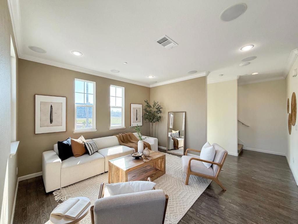 Discover this bright and spacious end-unit, featuring a well-designed 4-bedroom, 3.5-bathroom floor plan in one of the most desirable locations within the community. Spanning 1,851 sq ft, the home offers a comfortable and inviting living environment. The entry level includes a private bedroom with a full bath, ideal for guests, multigenerational living, or a dedicated home office. The kitchen is a chef’s dream, featuring a gas cooktop, quartz countertops, a built-in water softener, and a spacious pantry, complemented by a 5-year new dishwasher, refrigerator, and microwave. The home offers convenient amenities, including central AC and heating, a built-in ceiling speaker system, and easy access to fiber internet. Upstairs, the primary suite serves as a serene retreat, featuring a spa-like bathroom, dual vanities, and an expansive walk-in closet. The location is truly outstanding, just steps from neighborhood parks, golf courses, and the newly developed Market Park Plaza with Safeway, CVS, and more. You’re also minutes from Costco, Ranch 99, H-Mart, and major commuter routes, including 101, 880, and 680, offering effortless access throughout the Bay Area. Opportunities like this are rare. Don’t miss your chance to make this exceptional home your own.