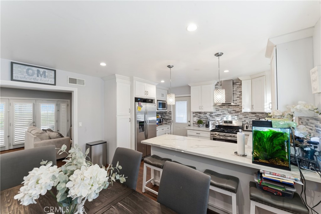 Welcome to this beautifully upgraded and remodeled 4-bedroom, 2-bath home near Lake View Terrace. Featuring plantation shutters and recessed lighting throughout, along with central heating and air, this home offers both comfort and style. The modern kitchen showcases marbled quartz countertops, a full backsplash, soft-close cabinetry, stainless steel appliances, a breakfast bar, and additional counter space ideal for a dry bar setup. The inviting living room features a cozy gas fireplace and opens to an oversized, private backyard—perfect for entertaining—with multiple access points and a large covered patio complete with ceiling fan and lighting. A convenient downstairs bedroom is ideal for guests, in-laws, or roommates, with potential for ADU conversion. Upstairs offers three spacious bedrooms, including two with direct access to a charming balcony/terrace—perfect for enjoying sunset views. A versatile loft area provides additional space for a home office or lounge.