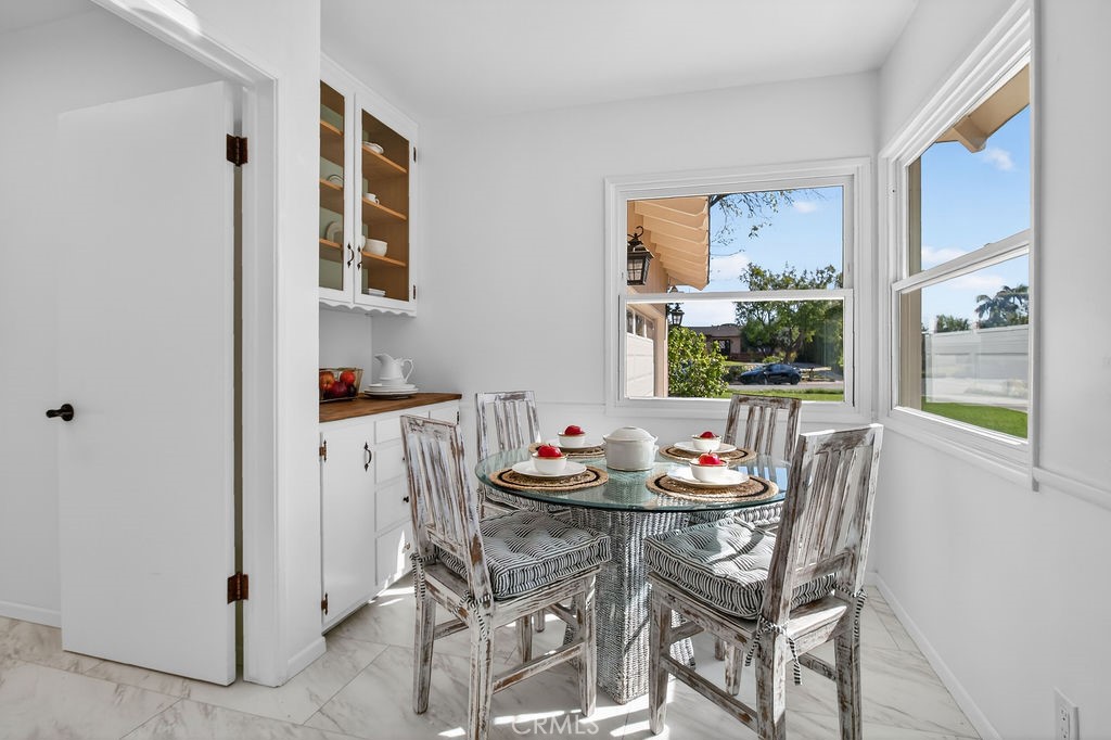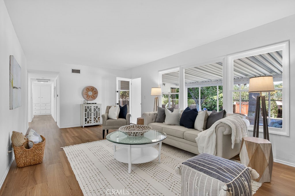 SERENE PARADISE WITH SPARKLING POOL ON CUL-DE-SAC Experience the epitome of indoor-outdoor living in this charming North Tustin home, with a pool and huge 16,200 sq ft lot. Key Features include: – Huge lot with two large flat pads located on a quiet cul-de-sac offers limitless possibilities for expansion or accessory dwelling unit. – Gorgeous pebble finish pool with diving board and expansive pool paved area for relaxing pool-side or outdoor entertaining. – Lush landscaping with mature trees, grassy lawn, fruit trees and raised planters creates a serene backdrop for everyday enjoyment. – Indoor-Outdoor living with views of the backyard from the living room and covered patio/sunroom. – New flooring featuring luxury vinyl with new carpet in the bedrooms. – Eat-in kitchen equipped with new appliances and a sunny breakfast nook, catering to both daily meals and gourmet cooking adventures. – Three spacious bedrooms including a walk-in closet in one bedroom. – Main bathroom with separate shower and bathtub and additional powder room. – Newer double-pane windows throughout, providing lots of natural light. – Large storage shed with electricity and windows, a second garden shed and a large dog run offer flexibility in increasing the home’s potential. – Whole house fan and solar system (leased) offers substantial cooling savings. – Location in a desirable North Tustin neighborhood with award-winning schools, minutes from parks, schools, shopping, and dining options. Easy access to major freeways ensures convenient commuting throughout Orange County and beyond. WHY YOU’LL LOVE THIS HOME: This home is more than just a place to live; it’s a retreat where tranquility meets convenience. Whether you’re relaxing poolside in the backyard surrounded by mature landscaping or exploring the many neighborhood amenities, this property offers the ideal setting for creating lasting memories.