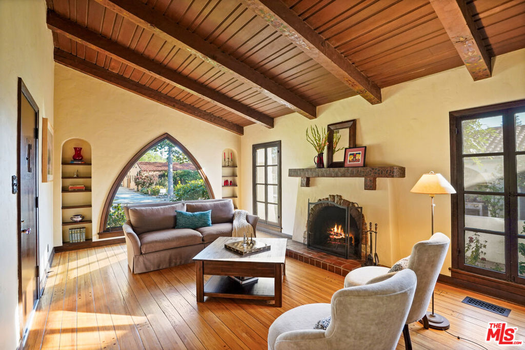 Set within a prime pocket of Glendale’s historic Rossmoyne district, this Spanish home has been carefully updated while preserving its authentic character. Everything feels in step with the home’s layout and original detailing, giving it a sense of consistency that carries from room to room. The living room is the defining space. A wood cathedral ceiling spans overhead, supported by exposed beams with original hand-painted stenciling. The same detailing continues onto the fireplace mantel. Peg-and-groove wood flooring adds texture underfoot, while an arched picture window brings in natural light throughout the day. The dining room sits just beyond, connected through gentle archways that keep the spaces open while still defined. It’s positioned in a way that makes both everyday use and larger gatherings feel easy. The kitchen is well laid out with ample cabinetry, colorful tilework, and a breakfast area that brings in morning light. At the rear of the home, the family room adds a second living space and opens directly to the backyard. A true family room, it’s well suited for movie nights and relaxed evenings, with direct access to the backyard. Three bedrooms are arranged along a central hallway, all well proportioned and flexible in use. The primary offers a comfortable footprint and storage, while the additional bedrooms work just as well for guests or workspace. The main bathroom has been updated in recent years, and a second bath adds convenience. The backyard is simple and fun, with a paved patio, a stretch of grass, and mature landscaping. A well-established avocado tree provides shade and a natural focal point. Rossmoyne is known for its gently curved streets, mature trees, and collection of well-preserved character homes, giving the neighborhood a distinct identity within Glendale. Blocks away from Whole Foods, Trader Joes, Fish King and the heart of the neighborhood; Nibley Park, it’s the kind of setting where homes feel established and streets feel quiet, while still within easy reach of everything Glendale has to offer.