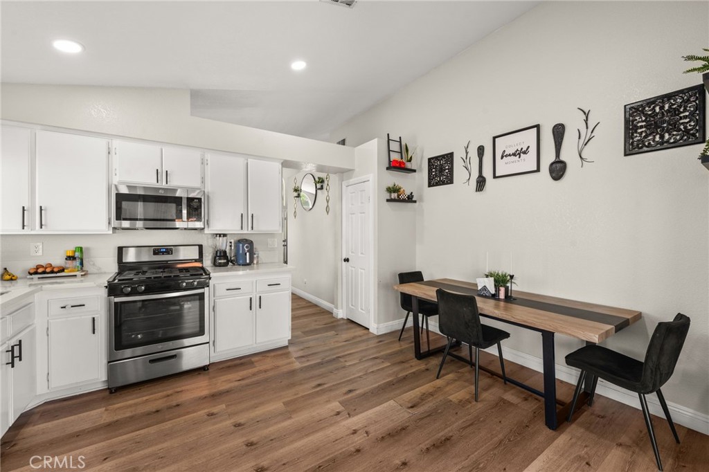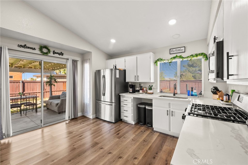 Beautifully Updated Single-Story Home with Modern Touches and a Bright, Open Floor Plan. Welcome to this stunning single-story home that perfectly combines comfort, style, and functionality. From the moment you step inside, you’ll love the bright and airy atmosphere created by high ceilings, large windows, and an open living space that’s ideal for family gatherings and everyday living. The modern kitchen has been tastefully updated with white cabinetry, sleek quartz countertops, stainless steel appliances, and contemporary black hardware. Whether you’re preparing a family meal or entertaining guests, this kitchen is both beautiful and practical. The spacious living room offers an inviting space filled with natural light, featuring neutral tones that make decorating effortless. The primary suite includes a private bathroom with dual sinks, upgraded fixtures, and a large walk-in shower, providing a peaceful retreat at the end of the day. Located in a quiet and established neighborhood, this home offers easy access to schools, parks, shopping centers, and major highways, making daily commutes and errands a breeze.