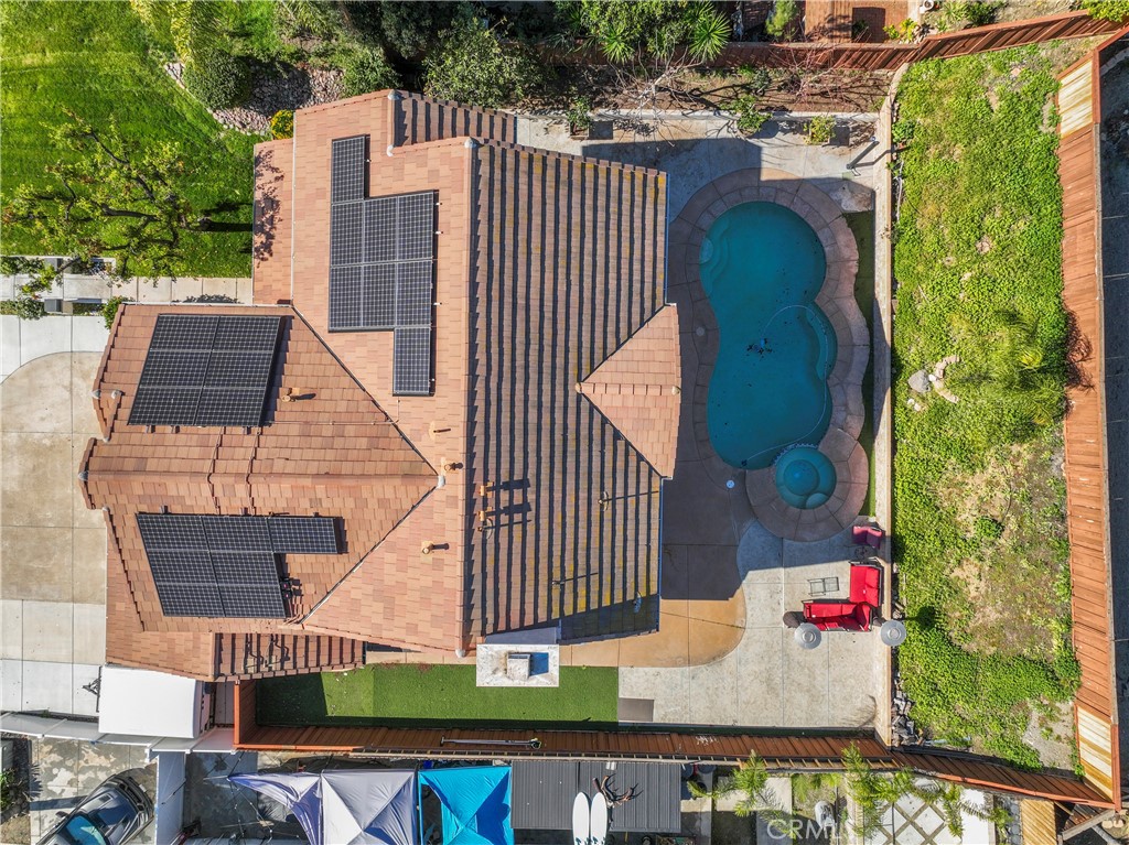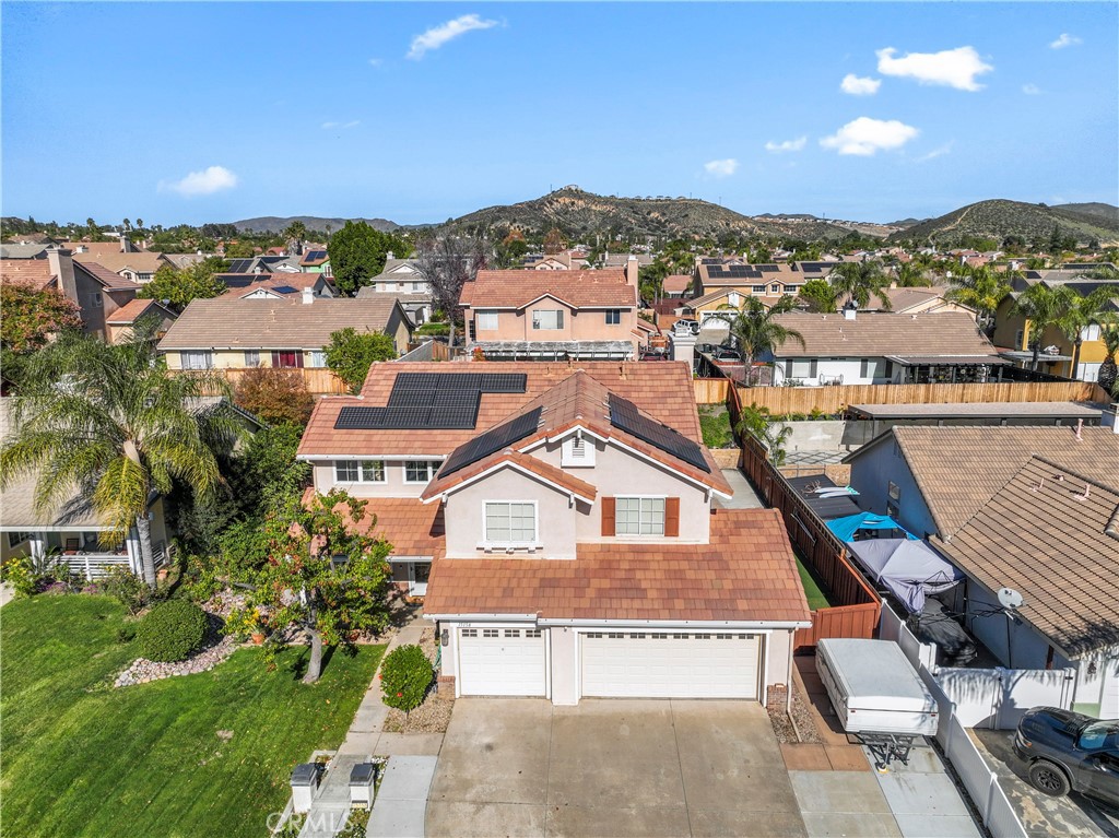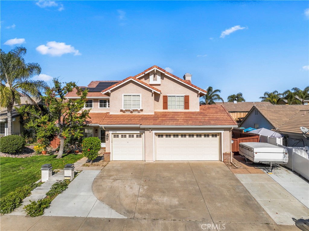 Welcome to 15158 Etienne St in Lake Elsinore—An Upgraded, Energy-Efficient home with no HOA and LOW TAXES. This property features paid-off Tesla solar panels and a new Tesla charger in the garage, offering long-term savings and modern convenience. Enjoy year-round comfort with a new HVAC system (quiet cool system) and new furnace, and ducting, designed for quiet, efficient performance. As you walk into the back yard you will notice a nice sized pool equipped with a new filter, new water pump, and heater, The large backyard is perfect for entertaining and summer fun. Additional highlights are, this spacious home offering 5 bedrooms, 3 bathroom, a functional layout ideal for everyday living. One bedroom conveniently located down stars close to the kitchen and a full bathroom. The family room is off the kitchen has a nice fire place and flows into the living room and dinning area. Up stairs you will find a nice sized loft thats next to the master suit and 3 other bedrooms and a full bath. 3-car garage with Tesla charger, paid solar, new AC and Heat, pool with new equipment, ample storage, Located in a desirable neighborhood with easy access to good schools, shopping, boating and commuter routes. All this house needs is YOU!