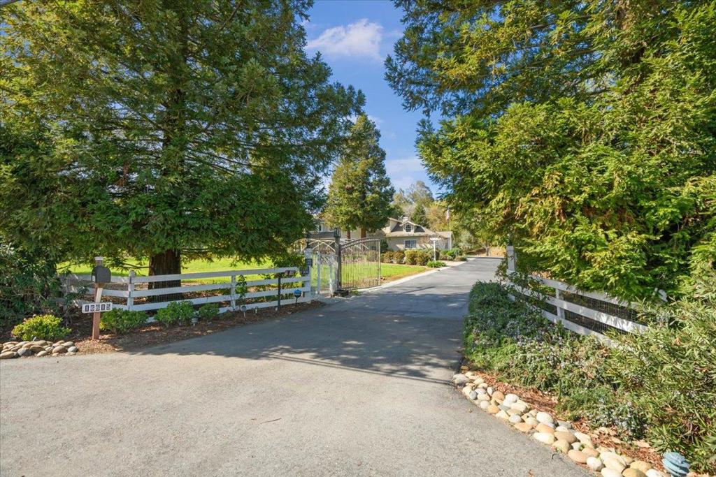 Welcome to your private country oasis! This charming home features a wraparound porch, offering timeless curb appeal and inviting outdoor living. The first floor has a bedroom & full bathroom that provides flexibility for guests, an office, or multi-generational living. Entertain in style in the separate living rooms and dining room, featuring open-beam vaulted ceilings. The primary bedroom retreat is complete with a walk-in closet and spacious bathroom with dual sinks and a soaking tub. Set on a sprawling 2.5 acre, lot with mature fruit trees, redwood trees and endless open space, this property is a haven for outdoor living. Enjoy the serene country setting while being just minutes from city amenities. With stunning views of the hills and lots of privacy, this is Morgan Hill living at its finest!