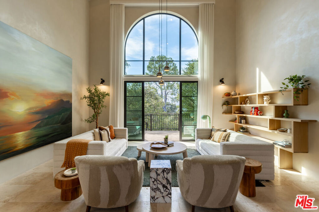 Set along a quiet, private drive in Topanga’s coveted PO Tract, this exceptional architectural home captures the essence of elevated canyon living- where design, nature, and creativity seamlessly blend together. Originally part of a historic ranch and surrounded by protected State Park land, the setting offers rare privacy, natural beauty, and accessibility to miles of scenic trails, all just minutes from town and a short drive to the coast. Completely reimagined in 2022 by a renowned Los Angeles designer, the home is a study in thoughtful craftsmanship and refined artistry. Every detail has been carefully considered, from sustainably sourced wood elements to bespoke finishes that lend warmth, soul and authenticity throughout. Bathed in natural light, the interiors are defined by soaring cathedral ceilings, dramatic double-height living spaces, and expansive picture windows that frame mountain and treetop views. Stepping inside, you’ll immediately be captivated by the main living area, an inviting space that feels both grand and intimate. The open-concept layout flows effortlessly from the living room into a beautifully appointed kitchen featuring premium appliances, designed for both everyday casual living and inspired entertaining. Custom cabinetry offers plenty of room for all your cooking essentials and storage galore. Dining and gathering spaces extend naturally outdoors, with all doors opening to expansive decks and lounge areas ideal for al fresco meals, sunset moments, or quiet mornings immersed in nature. Upstairs, the primary suite is dreamy and calming, feeling like your own private refuge with a breathtaking ensuite bath and windows overlooking the greenery and pool below. The second en-suite bedroom features a custom loft space (and a climbing wall!). A third spacious bedroom is a perfect place to imagine- it could stay a bedroom, perhaps be used as an exceptional home office or fulfill any other creative need. A unique architectural bridge connection and vaulted ceilings enhance the sense of openness and design continuity throughout the upper level. Set on approximately half an acre, the grounds are both lush and purposeful. Mature oak trees, native landscaping, and terraced gardens create a serene outdoor environment, while an array of fruit trees and raised garden beds invite a farm-to-table lifestyle. The property also features a refreshing pool/spa, outdoor lounge space, and multiple gathering spaces designed for both large-scale entertaining and quiet reflection. Additional amenities include a two-car garage with direct access, a spacious basement ideal for creative projects or storage, ample guest parking and a separate garden shed. The lower portion of the lot offers potential for an ADU, providing flexibility for future expansion or income opportunities. The home has also served as a sought-after location for lifestyle and design photography with past owners, offering additional revenue potential. This special home embodies the spirit of Topanga. Welcome home!