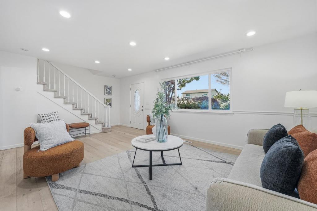Sunlight pours into every room of this lovingly move-in ready remodeled home five bedrooms and three full baths designed for generous, functional family living. A downstairs bedroom with a full bath welcomes guests or multigenerational life with quiet grace. Spaces flow in an open embrace: living, dining, and family areas gather around a kitchen dressed in white cabinetry, quartz counters, stainless steel appliances, and a thoughtful center island where morning coffee and evening conversation linger. Warm engineered hardwood on the first floor and upgraded dualpane windows add comfort and serenity. Outside, a covered patio overlooks a green backyard edged with fruit trees and a playful lawn a stage for laughter, gatherings, and slow Sunday afternoons. Nestled in the heart of North Valley/Berryessa, the home is close to parks, schools, and everyday conveniences a peaceful, welcoming place where family life naturally unfolds. Come see it and youll know its home.