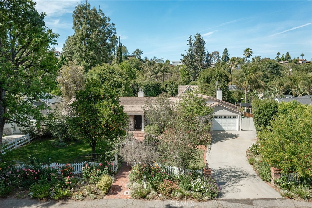 Spectacular Walnut Acres single story pool home with stunning 432 SF permitted ADU located on a sprawling 17,000 SF lot. On the market for the first time in 30 years, this classic ranch home boasts almost 100 feet of frontage adorned with gorgeous lush landscaping and fruit tree set behind a white picket fence, meandering brick pathways, and a sweeping driveway that leads to the 2-car attached garage. Almost every interior space is flooded with natural light and overlooks the impressive grounds. The massive family room features a mantled tiled fireplace and large picture windows overlooking the yard. Separate formal living room has another mantled stone fireplace, built-in bookcase, and two sets of French doors that lead out to a covered patio deck. The remodeled kitchen has stone counters, stainless appliances including a Viking range, real wood cabinetry with pantry space, and cozy breakfast nook with window bench seat. The spacious primary bedroom has walk-in closet, built-in storage cabinetry, French doors that open to the yard, and access to a full bathroom with bath tub and walk-in shower. There are two additional secondary bedrooms, one has French doors that open to the yard. A second remodeled hall bathroom has new vanity and walk-in shower. An oversized remodeled laundry room has farm sink and built-in storage cabinetry plus there is a convenient powder bathroom for guests. The expansive and extremely private backyard is truly an oasis boasting heated swimming pool and spa, covered pergola overlooking the pool, large patio space for outdoor dining, and gorgeous meticulously landscaped grounds that include mature trees, grass lawns, raised garden beds, and a storage shed. The detached permitted ADU built in 2020 seamlessly matches the main house’s design and features living room with soaring ceilings, kitchen with quartz counters and stainless appliances, wardrobe closet, bathroom with walk-in shower, and large covered front porch deck. Additional system upgrades per seller: newer cement tile roof (2021), electrical panel (2021), and copper plumbing. Adjacent to Westfield Mall/Village, Calabasas Commons, Warner Center with the new Rams Village in development, local parks/hiking trails, & zoned for award-winning El Camino & Hale charter schools. Incredible opportunity to own a stellar Walnut Acres property.