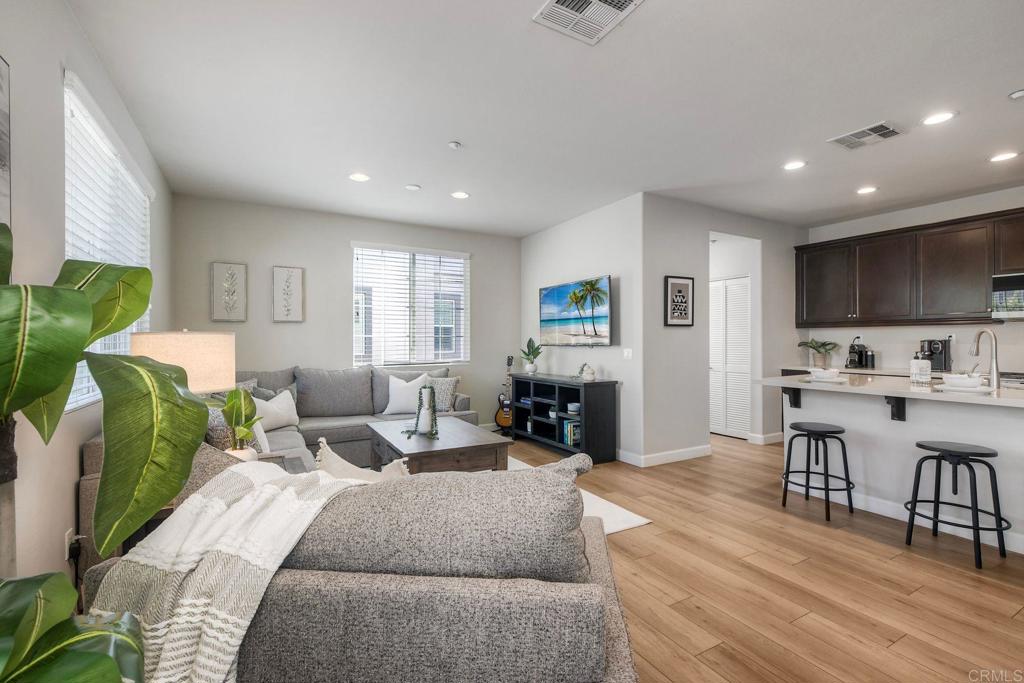 Welcome to this beautifully maintained END-UNIT home in the desirable Magnolia community of Old Creek Ranch, San Marcos! This spacious residence lives like a townhome-style condo, with no one living above or below you, offering 3 bedrooms, a versatile BONUS ROOM, and an ATTACHED 2-car garage. The entry-level bonus room with its own bath, is perfect for a home office, gym, or guest space. On the main level, you’ll love the open-concept layout featuring a well-appointed kitchen with a large center island and bar seating — ideal for entertaining. Enjoy newer 2024 appliances, stunning quartz countertops, warm-toned cabinetry, and a walk-in pantry. Natural light fills the living areas, and the private balcony with pool views provides a cozy outdoor retreat. A powder room and a laundry closet with full-size stackable washer and dryer add convenience. Upstairs, the primary suite offers comfort and style with an ensuite bathroom, while two additional bedrooms share a Jack-and-Jill bath. The attached oversized garage provides extra storage and includes a 220v outlet for EV charging. Residents of Magnolia enjoy resort-style amenities including a pool, spa, BBQ area, and tot lot. Ideally located just minutes from San Elijo Hills Town Center, award-winning schools, local trails, dining, and shopping — this is North County living at its best!