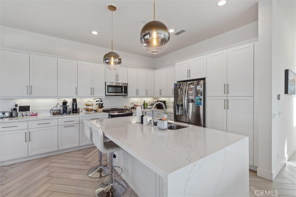 Highly desirable 3 bedroom 3 bath home located within the Beacon Park Community of the Great Park Neighborhood in Irvine. Perfect corner location with an open floor plan and model home upgrades lined with oversized windows that allows plenty of natural light. All living space is on the same level and the living room opens to a large balcony through a full wall opening slider that allows the ultimate of indoor/outdoor Southern California living. The sunsets and evening views from the balcony are amazing. The kitchen has upgraded cabinets, waterfall quartz countertops, custom lighting with matching trim, and a breakfast eating area alongside a dedicated dining room section. The bathrooms are lined with designer tile and accent treatments, extra-large walk-in shower with bench. Steps from HOA amenities, award winning schools, world renown parks and playgrounds. This is the ultimate Irvine living and is a must see.