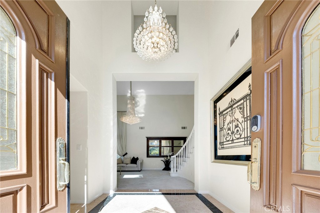 Enjoy breathtaking panoramic city lights and mountain views from this stunning home in the prestigious Ridgemoor gated community of Rowland Heights, offering 24 hour security guard. This impressive two story residence features approximately 3,883 sq ft of living space with 5 bedrooms and 4.5 bathrooms, thoughtfully designed for comfortable living and entertaining. A grand double door entry leads to a dramatic foyer with soaring ceilings. The formal living room with fireplace flows into the dining room, perfect for gatherings. The spacious family room with built ins opens to a well appointed kitchen featuring a large center island and breakfast nook. The flexible floor plan includes a main level bedroom suite, ideal for guests or multi generational living. Upstairs, the luxurious primary suite offers scenic views, dual walk in closets, and a spacious bath. The beautifully landscaped backyard features a sparkling pool and spa, built in BBQ, patio, and gazebo, perfect for entertaining while enjoying gorgeous panoramic city lights and mountain views, including snowcapped mountains in winter.