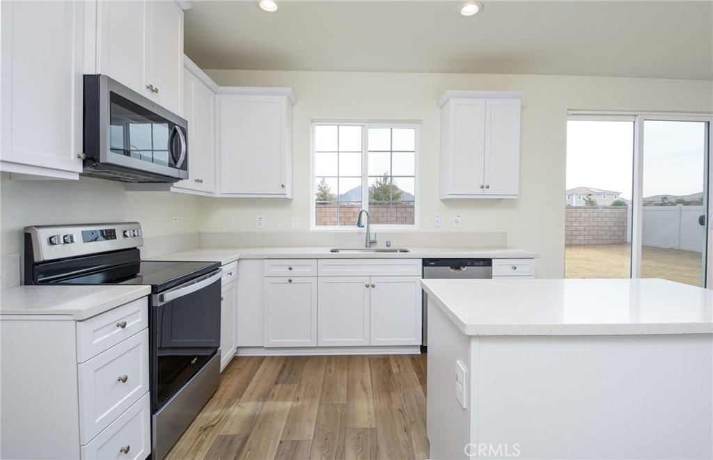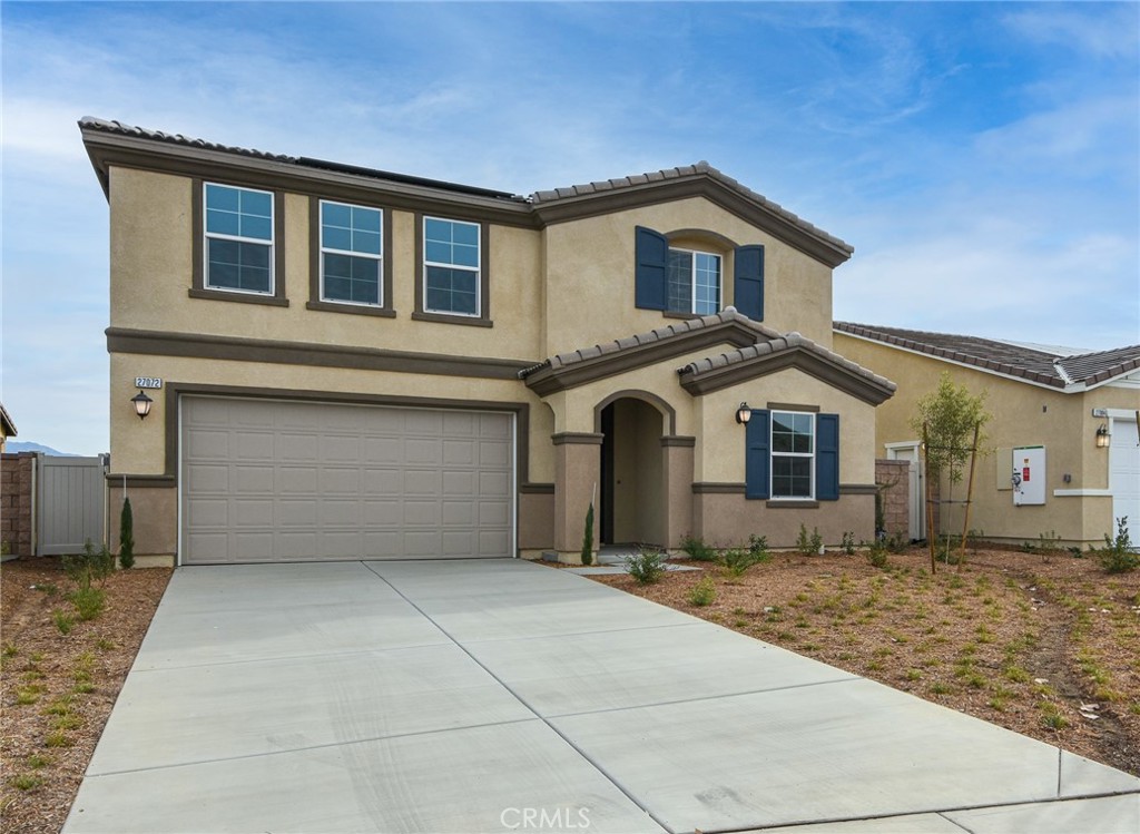 SELLER OFFERING 5K TOWARD BUYER’S CLOSING COST AND SELLER WILL BE PAYING SUPPLEMENTAL TAX BILL!!! Welcome to your oasis in the desirable Oak Shade community of Menifee!!!!!! This stunning BRAND NEW 4-bedroom, 3-bathroom home boasts an expansive 2,219 sq ft of living space, perfectly situated on a premium lot with expansive views of the mountains. PPA Solar with two batteries and EV ready garage port. As you step inside, you will find a thoughtfully designed layout featuring a convenient downstairs bedroom and full bath, ideal for guests or multi-generational living. The open-concept kitchen is a chef’s dream, showcasing beautiful White thermofoil cabinets with brushed satin nickel knobs, Quartz countertops, Moen® faucets and plumbing fixtures, a spacious pantry, sleek stainless-steel appliances—including a stove, dishwasher, and microwave, Kitchen Island, and Kitchen USB charging port. Gather in the family room or enjoy the seamless transition through the upgraded multi sliding glass doors to the rear patio and your large backyard. Upstairs, a versatile bonus room/loft offers endless possibilities for relaxation or entertainment, alongside two additional spacious bedrooms and a well-appointed hall bath. Retreat to the oversized primary bedroom, complete with dual sinks in the luxurious bathroom and a generous walk-in closet. This home is loaded with modern amenities, including, vinyl fencing, Smart electrical panel with whole-home surge protection, hybrid electric water heater and high-efficiency two-stage heat pump, Drought-tolerant front yard landscaping, WaterSense® labeled home, ENERGY STAR® certified home, Energy-smart connected community, and energy-efficient features such as leased solar panels—providing you with savings and sustainability. The extensive lot is perfect for all your outdoor desires, offering ample space for a future pool, an ADU, or your own private playground. Don’t miss the opportunity to make this exceptional property your new home! Schedule a showing today and experience all that 27072 Oncore has to offer!!! HOA amenities include: Tot lot * Basketball courts * Soccer field * Dog park * Close to medical facilities