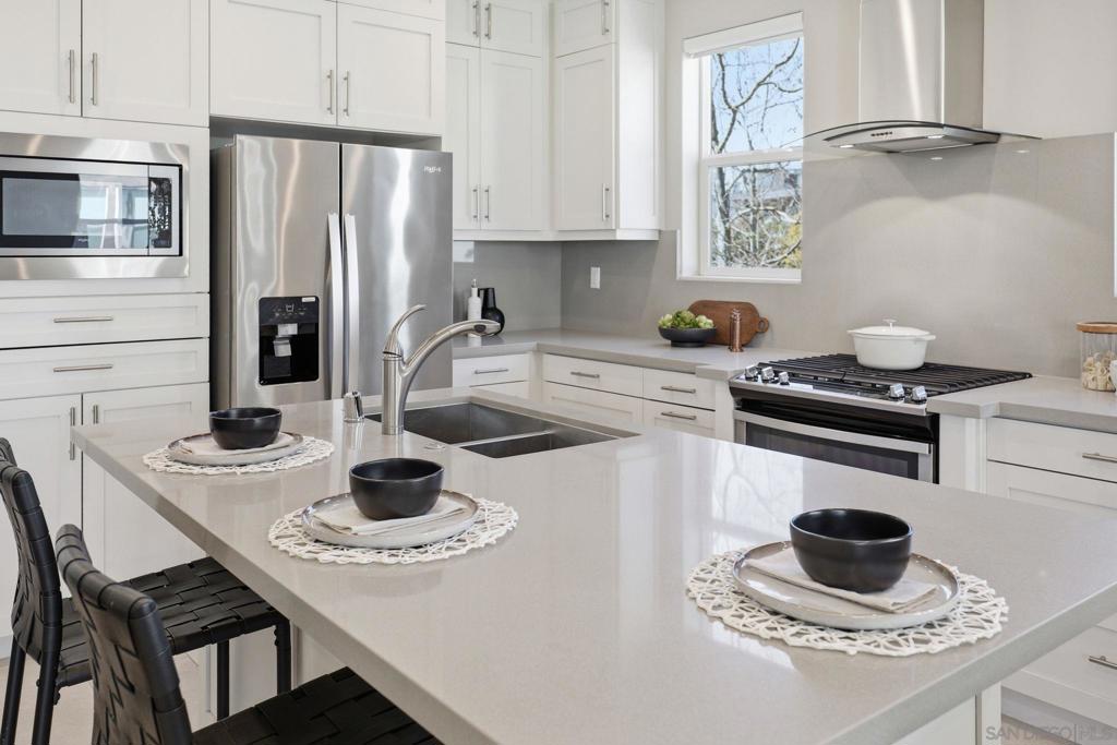 Welcome to Avella, a beautifully designed townhome community by Toll Brothers located in the heart of Civita, Mission Valley’s vibrant and walkable master planned neighborhood. This sophisticated three bedroom, two and a half bathroom residence offers 1,512 square feet of thoughtfully designed living space and an exceptional location just steps from Civita’s premier amenities. The home has recently been refreshed with brand new carpet throughout and fresh touch up paint, giving it a clean, move in ready feel that feels like new. The open concept main living area is filled with natural light and creates an easy flow between the kitchen, dining, and living spaces. The contemporary kitchen features sleek cabinetry, stainless steel Whirlpool appliances, and modern finishes that combine both style and functionality. One of the highlights of the home is the private rooftop deck, which faces the Civita Recreation Center and offers views of the Civita hillside. It is the perfect space to enjoy morning coffee, relax at sunset, or entertain guests. Additional features include a private balcony, attached two car garage with extra storage space, pre wiring for electric vehicle charging, and an energy efficient tankless water heater. Avella is located within Civita, Mission Valley’s vibrant and thoughtfully designed master planned neighborhood known for its walkable layout and lifestyle driven design. Civita offers residents everyday convenience with a variety of restaurants, boutique shops, local services, a veterinary clinic, and LA Fitness all within the community. A major highlight of Civita is The Row, the neighborhood’s highly anticipated retail and dining destination anchored by Jimbo’s Naturally. Once complete, The Row will serve as a central hub for organic groceries, dining, and everyday conveniences, further enhancing Civita’s unique live, work, and gather environment. Residents of Civita also enjoy access to the Civita Recreation Center, which features resort style pools, a spa, state of the art fitness center, BBQ areas, lounges, and inviting community spaces designed for both relaxation and connection. At the heart of the neighborhood is Civita Park, an expansive urban park offering walking trails, gardens, amphitheaters, sports courts, playgrounds, and open lawns that host community events throughout the year. Centrally located in Mission Valley, Civita provides easy access to San Diego’s beaches, downtown, Snapdragon Stadium, and major freeways, creating a lifestyle that blends urban convenience with outdoor living.