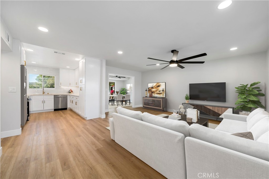 This beautifully renovated home is located in the highly desirable Sun City 55+ community and has just undergone a complete, high-end transformation. As you arrive, you?ll notice the fresh modern farmhouse paint scheme, elegant light fixtures, and brand-new energy-efficient windows that give the home a striking first impression. Step through the new front door to find a custom-designed kitchen featuring soft-close white shaker cabinetry, stainless steel Samsung appliances, marble-like quartz countertops, and tile backsplash extending to the ceiling. Under-cabinet lighting adds warmth and showcases the kitchen’s designer appeal. The fully renovated hall bathroom includes a tiled-in bathtub, a modern vanity, and farmhouse-style lighting, creating a serene space. Both bedrooms are generously sized, with the primary bedroom spacious enough to comfortably fit a king bed. The oversized en-suite primary bathroom boasts a dual vanity and a fully tiled shower, a unique feature in Sun City homes. Throughout the home, waterproof luxury vinyl plank flooring and 5-inch baseboards add style and durability. A new Carrier HVAC system, LED recessed lighting, and ceiling fans are installed to enhance comfort and energy efficiency. Sun City Civic Association provides residents with access to a large clubhouse, multiple pools, and a variety of activities for active seniors. This home and location offer an incredible combination of style, comfort, and community. Schedule a showing today?this gem won?t last long!