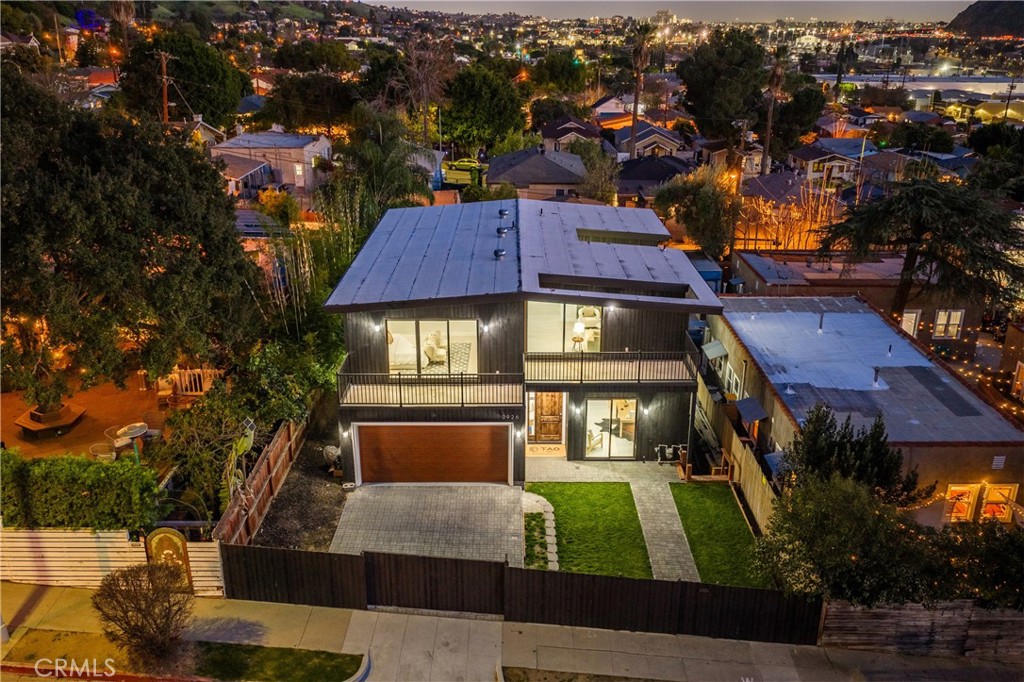This brand-new, ground-up construction completed in 2025 delivers elevated modern living in a prime Northeast Los Angeles hillside setting. Thoughtfully designed with clean architectural lines and intentional indoor-outdoor flow, the home offers approximately 2,550 square feet of refined living space with 4 bedrooms and 3.5 bathrooms. The main level features a private en-suite bedroom with a full bathroom, ideal for guests or multi-generational living, with sliding glass doors opening directly to the outdoor space. At the heart of the home, the kitchen, dining area, and family room are unified beneath dramatically high ceilings, enhanced by expansive windows that flood the space with natural light. Two tri-fold sliding doors create a seamless connection to the backyard, making the layout equally suited for everyday living and effortless entertaining. The kitchen is both functional and elegant, showcasing quartz countertops, premium stainless-steel appliances, custom cabinetry, and a generous center island that anchors the open living space. Upstairs, the primary suite offers a private retreat with a spa-inspired bathroom and its own exclusive balcony, providing a quiet escape with open views. A secondary upstairs lounge area also opens to a balcony, adding flexibility and additional outdoor living space. All guest bedrooms enjoy open sightlines and pleasant views, reinforcing the home’s airy and elevated feel. Designed with energy efficiency, smart home features, and quality craftsmanship throughout, the property offers exceptional outdoor potential. The expansive, flat backyard provides ample space for a future ADU, while the existing electric iron gate along the perimeter wall already establishes the foundation for independent access, creating a rare opportunity for flexible use. Conveniently located near major transportation routes, dining, shopping, and the vibrant neighborhoods of Northeast LA, this newly built residence combines architectural presence, livability, and lasting value.