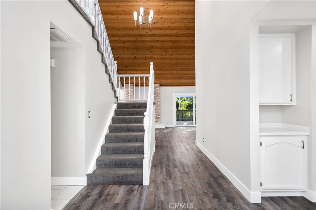 Welcome to this stunning Canyon Lake home, perfectly tucked away at the end of a peaceful cul-de-sac with beautiful lake and mountain views. Located just steps from one of the community’s largest parks, this home captures the very best of the Canyon Lake lifestyle — from morning walks by the water to front-row seats for the community’s spectacular Fourth of July fireworks show. Step through the leaded glass front door into a bright, open floor plan filled with natural light and stylish upgrades throughout. The spacious living room features wood flooring, vaulted ceilings, and a cozy fireplace — the perfect gathering spot for family and friends. The fully remodeled kitchen showcases sleek gray cabinetry, quartz countertops, a matching backsplash, stainless steel appliances, and a large breakfast bar that flows effortlessly into the dining area. Downstairs you’ll find two inviting bedrooms and an updated bathroom with a seamless glass shower and modern finishes. Upstairs, the private primary suite offers a soaking tub, dual-sink vanity, and separate shower, along with a loft and balcony where you can take in the lake views and fireworks at night. Outside, the backyard feels like your own private retreat with mature trees, a covered patio, and plenty of space to entertain or unwind. The extended concrete side yard runs from the driveway to the back — perfect for parking a golf cart, small trailer, or jet ski. All of this located within Canyon Lake, a private, gated community with 24/7 security and unmatched amenities, including a 384-acre waterski/fishing lake, 20+ parks with beaches and playgrounds, basketball and baseball courts, tennis and pickleball, an equestrian center, an 18-hole golf course, dog park, community pool, restaurants, slalom course, ski jump, golf cart-friendly streets, and year-round events for the whole family!