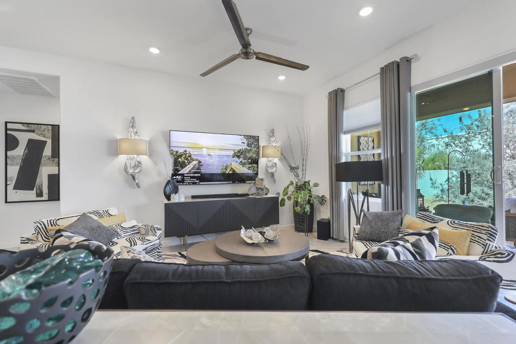 Prepare yourself to see luxury at its finest when you enter this home at the premier 55+ community in Palm Desert.. Every detail has been meticulously crafted to afford you the maximum comfort and sophistication for your enjoyment . Featured in this home are 3 spacious bedrooms plus an office or fourth bedroom and 2.5 beautifully designed bathrooms. The designer wall coverings accentuate the height and breath of each wall. Every dual paned window is adorned with custom blinds to ensure maximum privacy. The kitchen….wow…granite and quartz countertops add heightened opulence to the entire room. All landscaping was lovingly acquired and placed in both the front yard and the rear yard to exhibit the beauty of desert landscaping and tranquility. This home is being sold unfurnished ..but don’t be dismayed. It all can be yours for an additional price.