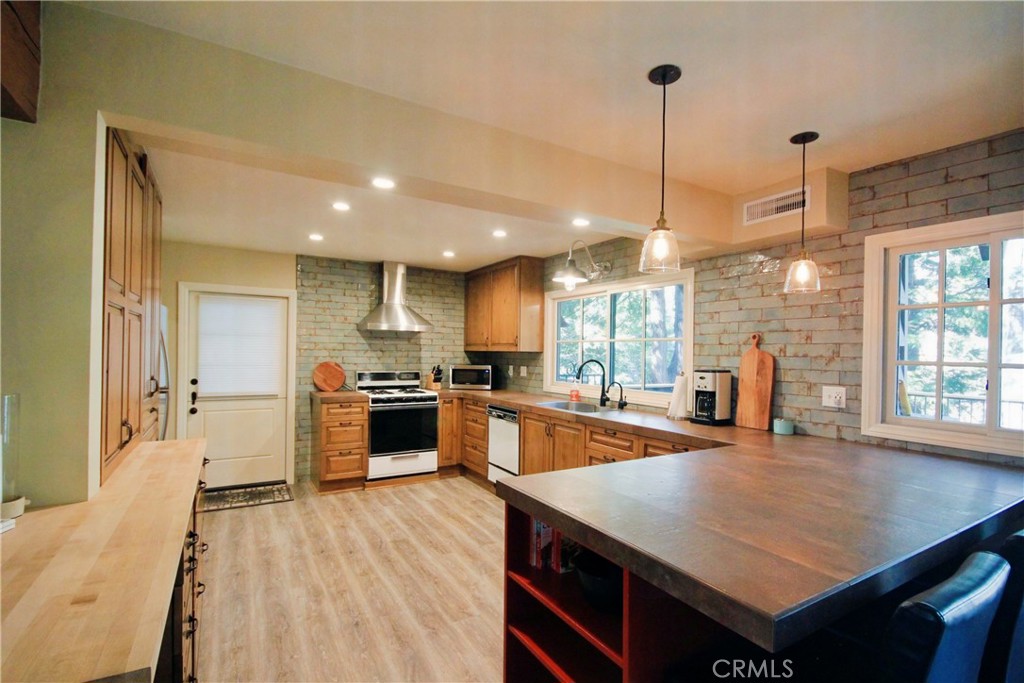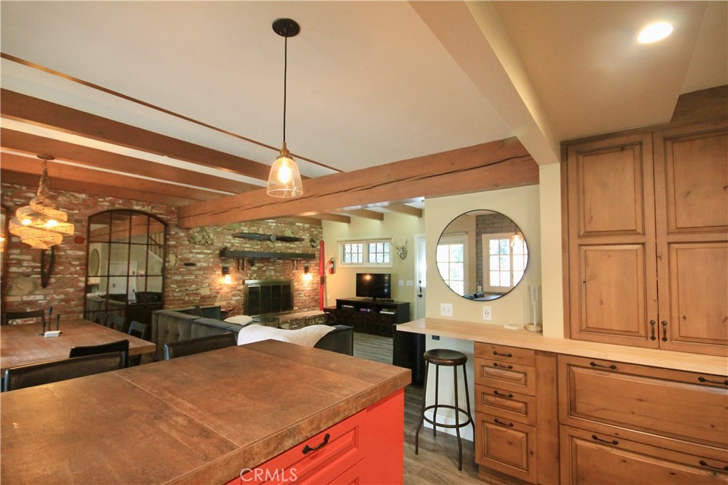 Welcome to 375 Terrace Road, a beautifully maintained Mountain getaway nestled in the heart of Arrowhead Woods. Just a short stroll from Lake Arrowhead Village, this home showcases maximum pride of ownership and is ready for you to move in and enjoy. Step inside to an inviting open-concept layout that seamlessly connects the kitchen and cozy living room. The kitchen features rich pine cabinetry, custom tile work, and upgraded lighting—all framed by stunning wood-beamed ceilings. Step out onto the rear-facing Trex deck—ideal for a morning coffee or afternoon barbecue. Surrounded by towering trees and crisp mountain air, it’s the perfect outdoor retreat. This home also includes several comfortable upgrades: An operating whole-house generator, A hardwired natural gas BBQ, Beautiful stone countertops, A spacious basement with ample storage, and a fresh (professional) $20K exterior paint job. Lovingly cared for by its current owners, this property is priced to sell due to a job relocation. Did we mention, the property is a fully functional (and permitted) STR with 5 star reviews. Don’t miss the opportunity to own your perfect mountain escape—schedule your showing today!