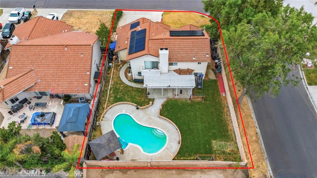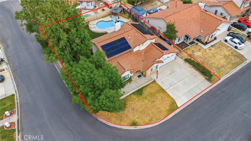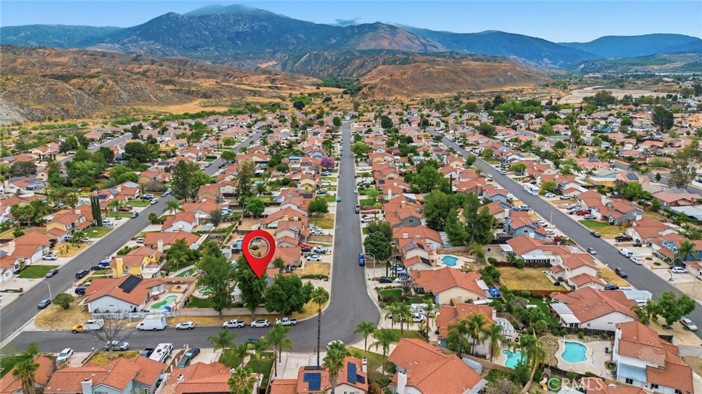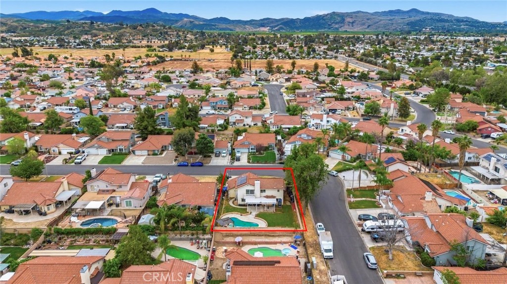 Welcome to this charming five bedroom pool home. Large lot 7,405 sq. ft. This beautiful residence offer a functional floor plan with an abundance of natural light, vaulted ceiling. Family room with cozy fireplace, ideal for everyday living and entertainment. Living room features built-in bookcase and large windows. Dining area includes built-in cabinetry. The open concept kitchen is the heart of the home with breakfast nook and plenty of cabinets for storage. Main level offers two bedrooms and two baths. Upstairs primary suite includes a jacuzzi tub, double sink vanity and separate private shower added for comfort and privacy, balcony includes a beautiful view of the mountains. The upstairs rooms includes two more bedrooms with Jack and Jill bathrooms. The large backyard is an entertainer’s oasis with a heated sparkling pool and jacuzzi with a relaxing atmosphere. Two car garage with laundry hook-ups inside. Close to schools, shopping. Valle Vista fire station and large shaded park. This home truly combines comfort, space and convenience in one of Hemet most desirable communities.
