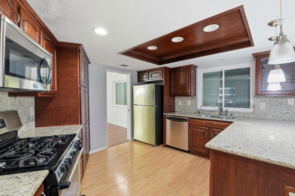 This inviting 4-bedroom, 3-bath home offers generous living spaces under high vaulted ceilings that create an open, airy feel. Its well-proportioned kitchen sits naturally within the main living space and offers plenty of cabinetry along with island workspace for daily meal prep. Consistent flooring carries through the kitchen, dining area, and family room, reinforcing a cohesive layout, while the family room connects comfortably to the outdoor deck and backyard. Practical features include an attached garage and a separate storage shed, offering convenient space for vehicles, tools, and everyday storage needs. Bedrooms are distinct and well sized, giving you flexibility for rest, work, or guests, while three full baths help keep morning routines running smoothly. Grocery shopping is easily accessible at nearby markets and larger retail centers, while nearby parks offer open green space for walks and outdoor time. Dining options, cafes, and casual eateries are a short drive away, and major roads make it easy to move around Lancaster and the greater Antelope Valley area. *Pets allowed. Pet weight limit is 40 lbs – if your pet exceeds this, please reach out to see if we can accommodate! *Fireplace is for decorative use only and cannot be used without consent from Belong.
