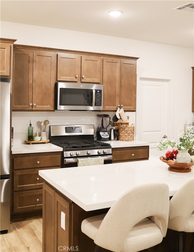 Welcome to this stunning move-in ready home that checks every box! Featuring a gorgeous, modern kitchen and a spacious quartz center island perfect for gatherings, meal prep, or entertaining. This home instantly feels warm and inviting. The bright open floor plan creates an effortless flow throughout the living spaces, while the generously sized primary suite offers a peaceful retreat complete with an en-suite bathroom, double sinks, a walk-in shower, and a roomy walk-in closet. On the opposite side of the home, you’ll find two well-seized secondary bedroom and the second full guest bathroom conveniently located near the common areas. A spacious laundry room and a versatile den that you can easily turn into a home office or additional living space. Location is unbeatable. A short walk from the community pool and pickleball courts, and minutes from the freeway and shopping centers. This home offers both convenience and year-round fun! Schedule your showing today!