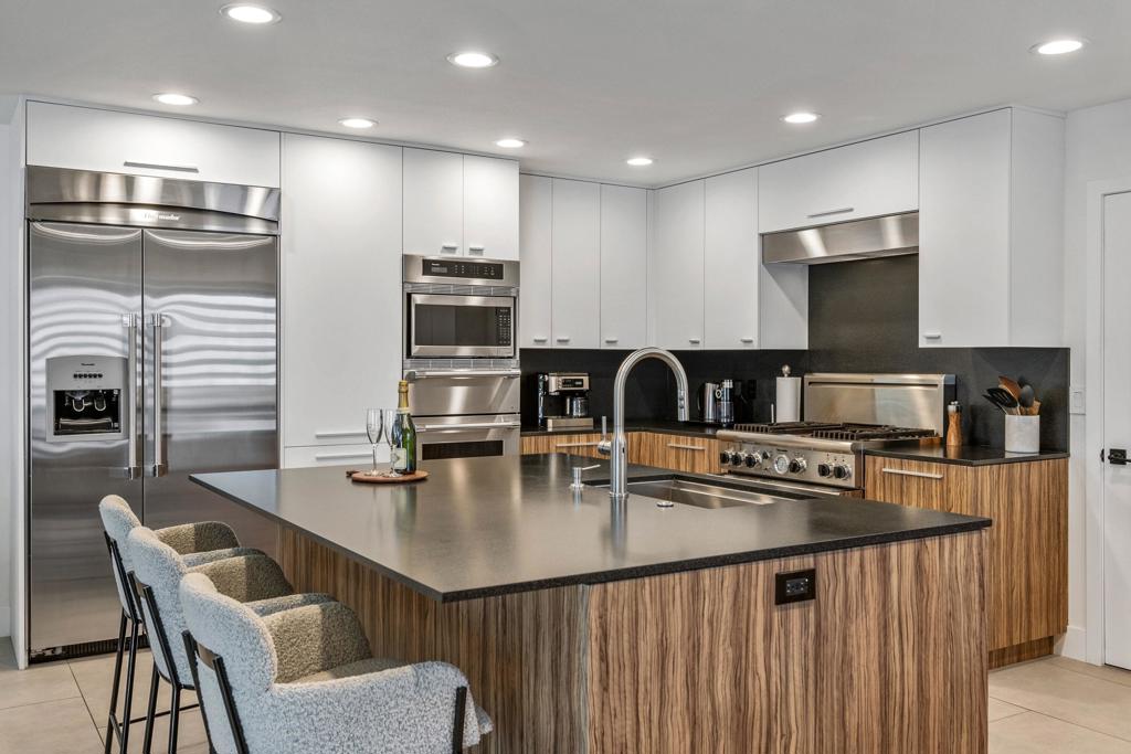 Welcome to Tahquitz Creek Villas–an exquisite blend of refined design and contemporary comfort… This desert retreat has 1,652 square feet of light-filled living.in the heart of South Palm Springs. Set within a gated community framed by the dramatic San Jacinto Mountains, residents enjoy resort-style amenities including three sparkling pools, a spa, and tennis, pickleball, and shuffleboard courts.Completely renovated in 2021-22 with refined craftsmanship and premium materials, this sophisticated condo is truly move-in ready. The reimagined Chef’s kitchen is the centerpiece of the home, featuring a spacious island designed for both everyday living and effortless entertaining. High-end Thermador appliances elevate the kitchen, highlighted by a THERMADOR Professional 36” gas range and matching stovetop, which pairs beautifully with these unique granite countertops a leathered-textured surface for a soft yet inviting feel. Exotic Olivewood veneer cabinetry with soft-close drawers adds warmth and distinctive character.The thoughtful upgrades continue throughout, including dual-pane windows, sliding patio doors, Built-in Security Screens on double front entry doors, Kerr Tile flooring, elegant Tabarka tile on Fireplace, and fresh paint throughout.The same-level primary suite opens directly to a private outdoor oasis with a nearby pool, spa, and BBQ–perfect for relaxed desert evenings or peaceful mornings. The spa-inspired bath features Fina original tiles, dual vanities, expansive counter space, and beautifully organized walk-in closets. Major systems have been updated within the past 2-8 years, including the A/C condenser and a whole-home water filtration system. Completing the home is an attached one-car garage and additional carport, providing convenient and indispensable parking.