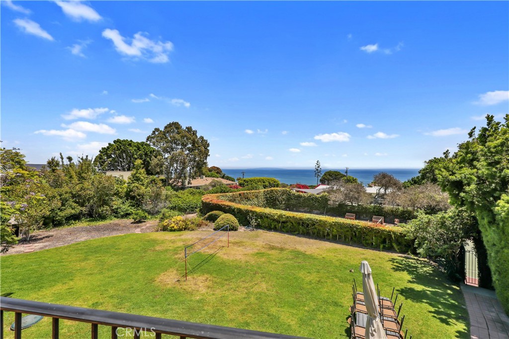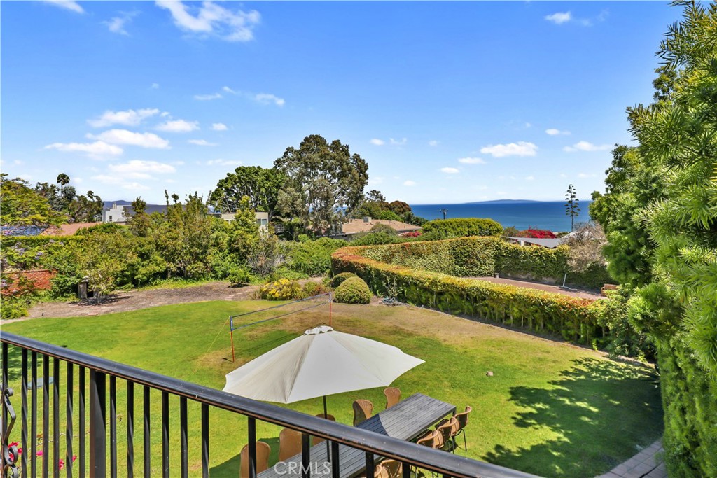 Just a short walk to one of Malibu’s most beautiful beaches is this private and gated two-story Point Dume home with ocean views from just about every room. This five bedroom/three bath home includes a main level formal living room with fireplace, high ceilings and glass/wood sliders to a panoramic ocean view entertainer’s deck, a formal dining room, large fireplace, family room, a granite island kitchen with eat-in area and a en-suite bedroom w/private wood deck. The lower level boasts an ocean view suite with a fireplace, high ceilings, glass/wood sliders open onto a covered patio, two spacious closets, a dressing area with custom shelves and a gorgeous blue tiled shower bathroom, plus three additional bedrooms. The landscaped yard, has a large grassy lawn and a smorgasbord of fruit trees, outbuilding (hut), pool/spa, fire pit, tennis court and an enclosed veggie/herb garden area. There is a 3-car garage and ample guest parking. Heated pool and spa, tennis court, badminton net. Walk to the award-winning Point Dume Elementary School. Dine in the quaint village and do your grocery shopping. It is a retreat on the sea. Showings begin March 15,2026.