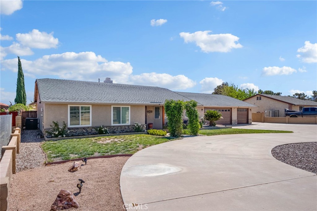 Welcome to this beautifully maintained 4-bedroom, 3-bathroom home located on “The Mesa” in Hesperia, offering a perfect blend of comfort, functionality, and exceptional indoor-outdoor living. From the moment you step inside, you’ll notice the stunning hardwood floors, plantation shutters throughout, and the pride of ownership that makes this home truly turnkey. The well-designed layout includes a formal living room, dining room, and a cozy reading room featuring a pellet stove and custom built-in storage. The spacious great room (approximately 21’ x 27’) serves as the heart of the home, complete with tall ceilings, a gas insert fireplace, built-in audio, and a pool table that stays with the property. This versatile space also provides direct access to the fourth bedroom, ideal for guests or multigenerational living. The upgraded kitchen features granite countertops and flows seamlessly into the home’s living areas. A highly functional laundry room offers a utility sink and abundant storage, and connects to an additional room providing even more storage along with an oversized pantry. A flex room adjacent to the great room adds versatility for a home office, gym, or playroom and features a skylight that brings in natural light. The recently remodeled third bathroom adds a fresh, modern touch. Step outside to enjoy a backyard designed for both relaxation and entertainment. Large windows and sliding glass doors showcase views of lush green grass and a sparkling blue in-ground pool. The expansive yard features a covered patio protected from both sun and wind, outdoor audio speakers, a spa, basketball hoop with concrete pad, a second-story playhouse, raised garden beds, and a wood pergola with a gas tabletop heater. Additional highlights include a pool house and a large 12’ x 18’ storage shed with electricity. The entire backyard is enclosed by a three-sided block wall, offering privacy and security. Completing the property is a spacious 3-car garage, providing ample parking and storage.